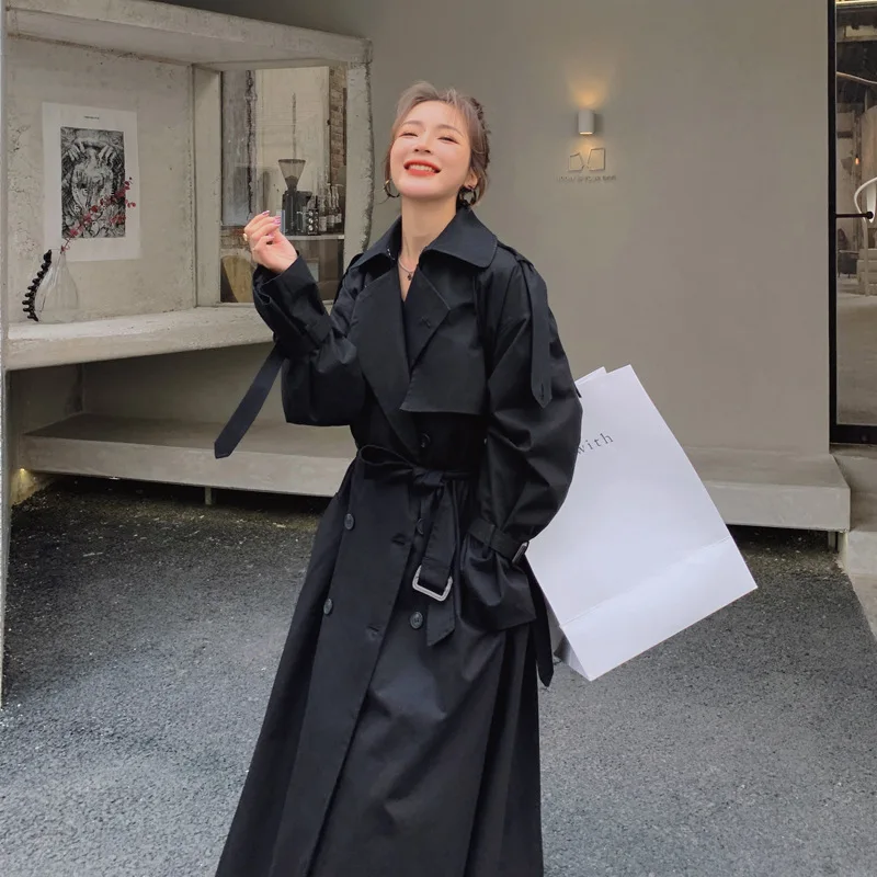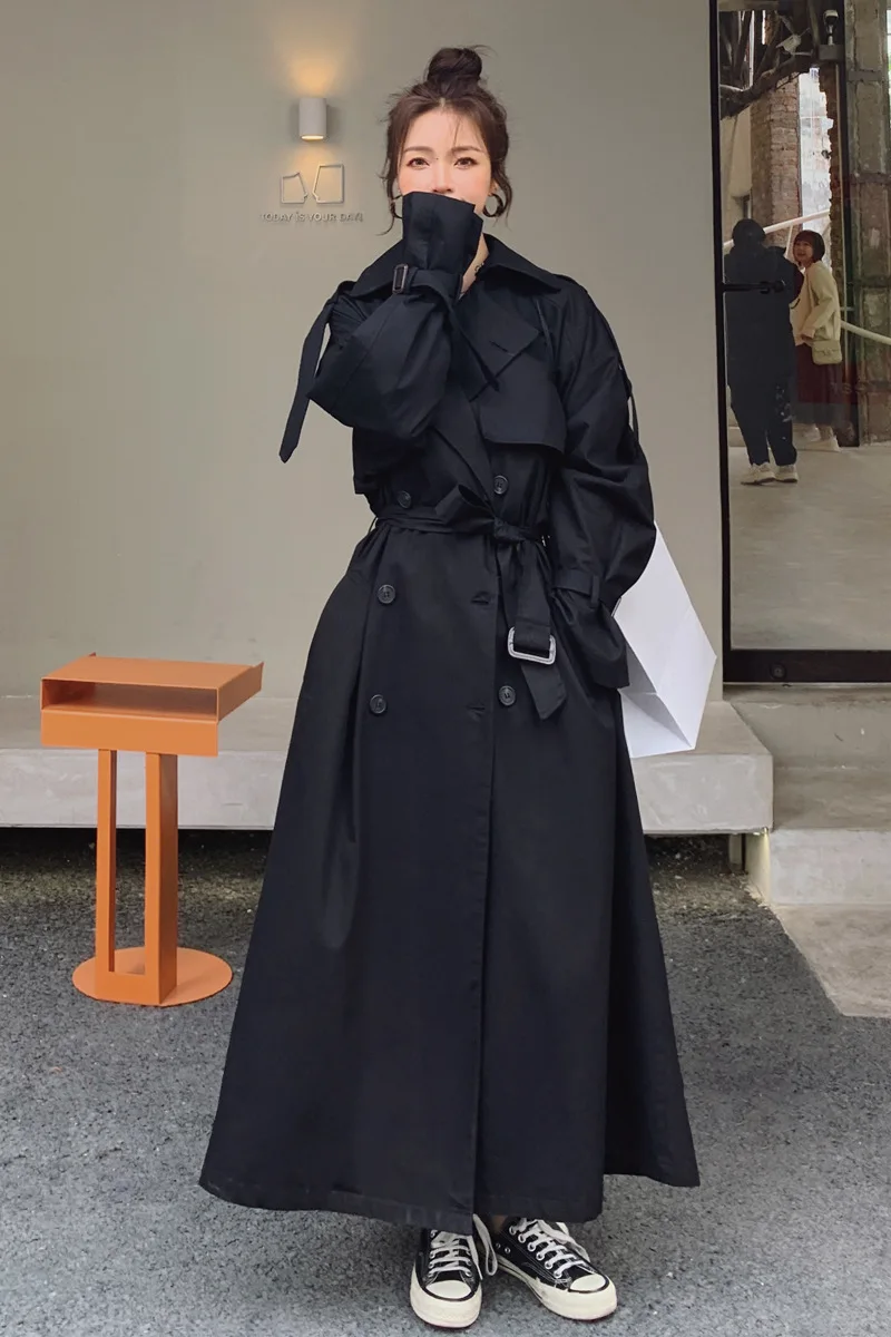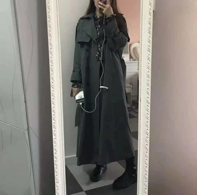 Роскошная куртка-Тренч; Большие размеры; Длина до щиколотки; Рукав средней длины