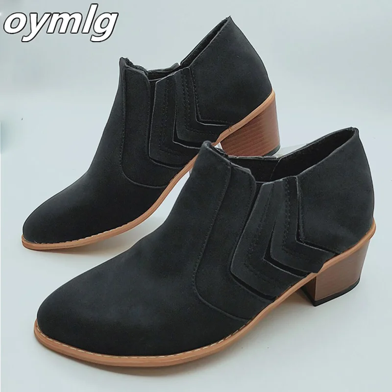 Женские ботильоны в стиле ретро, кожаные ботинки на высоком блочном каблуке, ковбойские ботинки, большой размер, для зимы, 2020