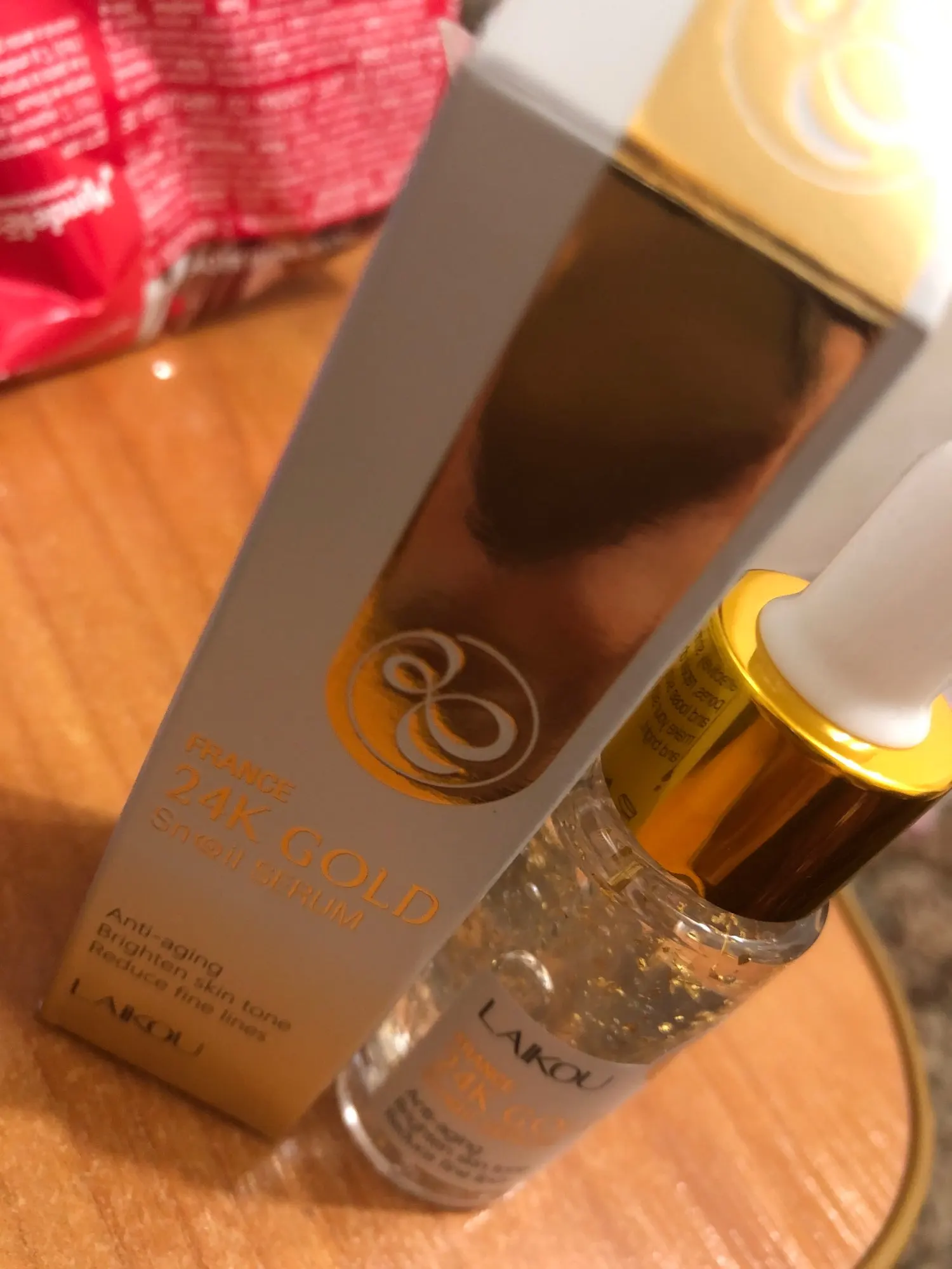 Всем привет))) Мой Instagram- insta.ledymystery Тестируем новую сыворотку - восстанавливающая с муцином улитки! Другими словами "золотая". Сыворотка имеет золотые вкрапления, похожа на лак для ногтей с блёстками. После нанесения сыворотки, золото остается на коже лица? Об этом расскажу в конце обзора. Флакончик на 17 мл. На одно применение достаточно 2-3 капель. Удобно дозировать, т.к. крышечка сделана в виде пипетки. Легко и быстро впитывается,не оставляя ни блеска ни жирного налета. Отлично увлажняет кожу. "Золото"...."золото".... Нанося на кожу лица золотые вкрапления втираются в кожу и исчезают... Прикольно, я такого раньше не видела) Расход сыворотки маленький - цена низкая- увлажнение кожи отличное!Рекомендую к покупке на морозную и ветреную погоду! Магазин хороший, покупала уже несколько раз в данного продавца- все четко и быстро! #длясебялюбимой#красоткам#сыворотка#золото#24KGold#Laikou#Ledymystery