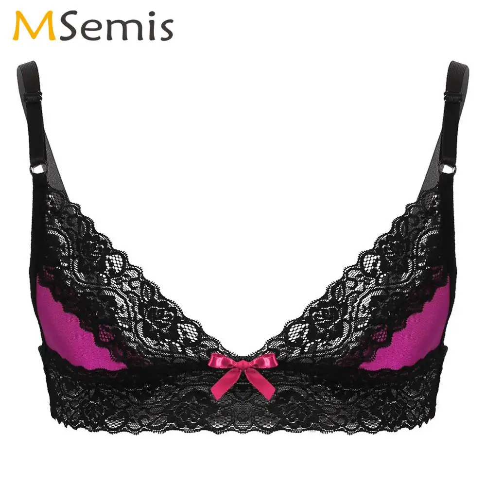 Фетиш мужские Sissy топы с бюстгальтером без косточек регулируемые бретельки кружевной треугольный бюстгальтер с чашечками Эротическое без косточек без подкладки гей Бюстье белье