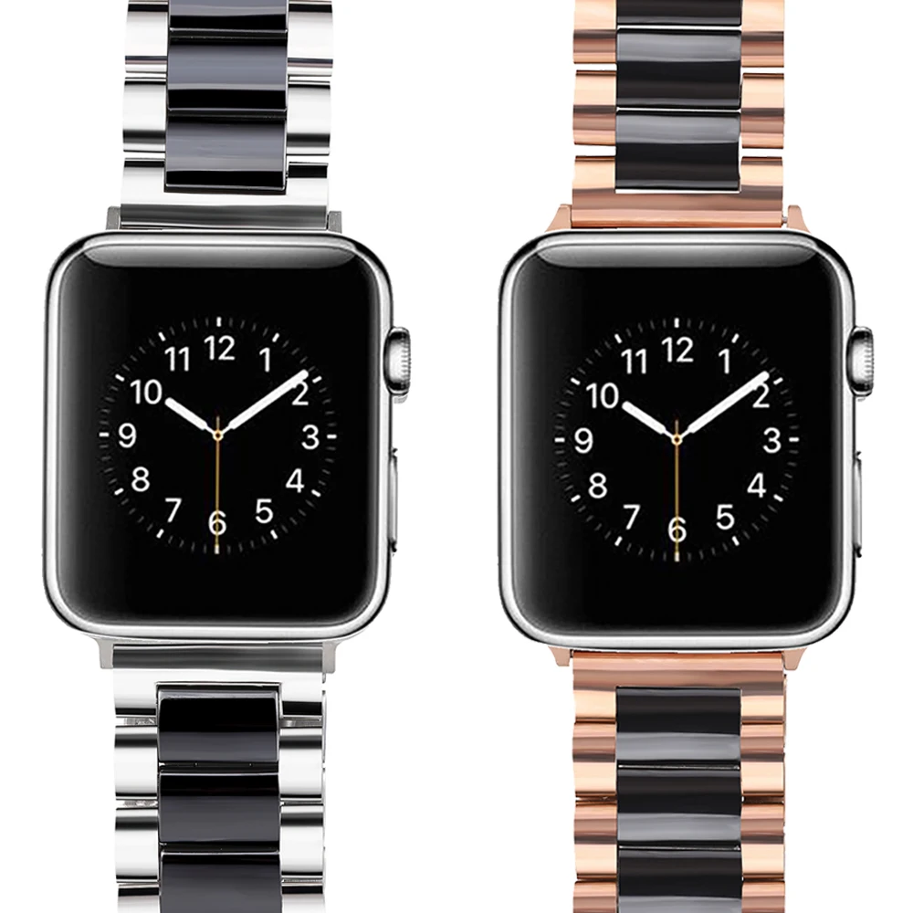 Ремешок из нержавеющей стали и керамики для Apple Watch, металлический браслет для часов, совместим с моделей 7SE654321, 4145 мм 44403842 мм