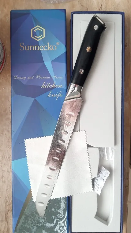 1 х 8 ''нож для хлеба(Weight-220g ножа, длина лезвия-8 ''/ 203 мм, Длина ножа-13"/ 330 мм, Thickness-2.2mm лезвия)
