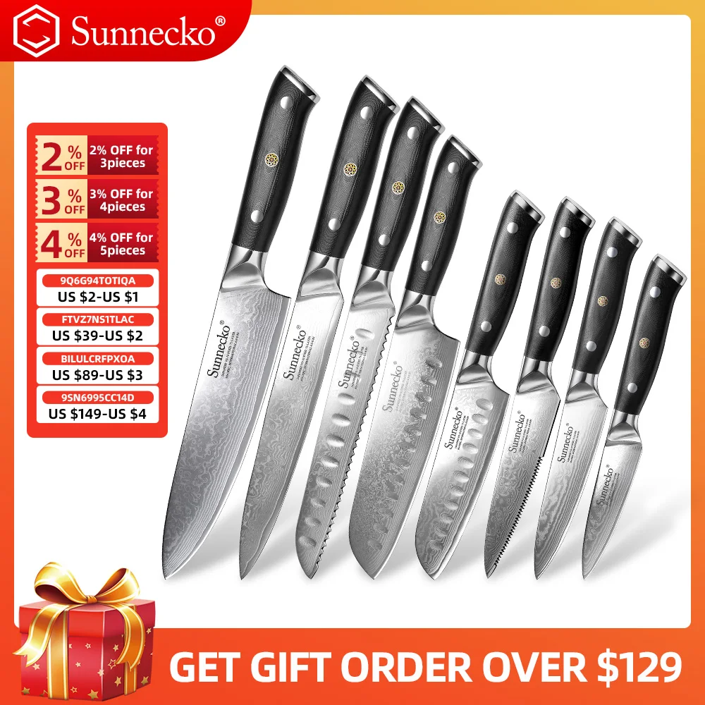 SUNNECKO 6 шт. набор кухонных ножей дамасский нож шеф-повара японский VG10 Сталь G10 Ручка нарезки Santoku утилита нож для очистки хлеба