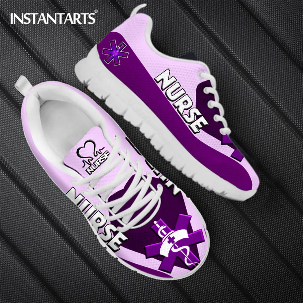 Женские кроссовки INSTANTARTS, Легкая сетчатая обувь для медсестер, дизайнерская весенняя обувь на плоской подошве, со шнуровкой, премиум-класса