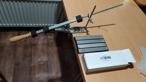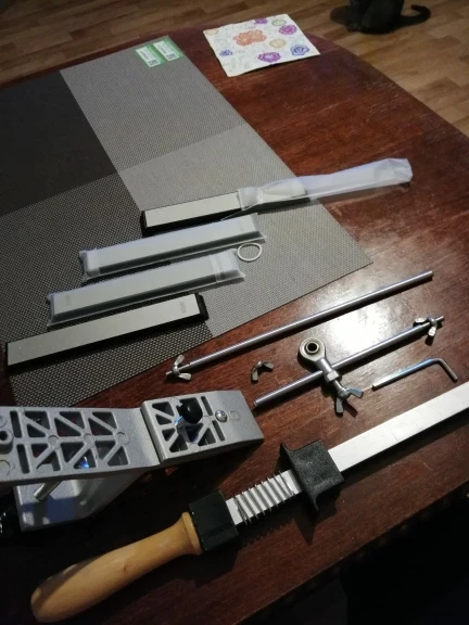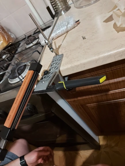 работает но ожидал лучшего. нужно доработать. тяжело поймать угол при перевороте ножа. узкие ножи не получится заточить. кухонные ножи наточил (даже порезался чутка когда ножи мыл) камни не совсем ровные а так же 3000 и 5000 другой длинны и чуть по толщине отличаются . если руки на месте ,то это лучше и качественней чем просто на бруске точить.....