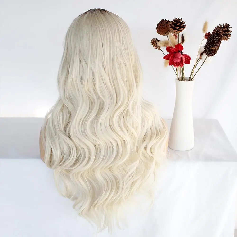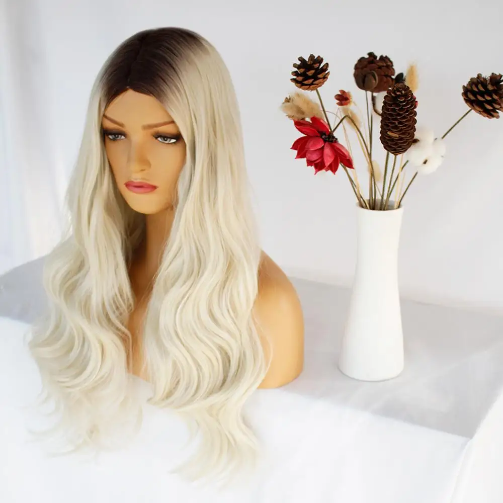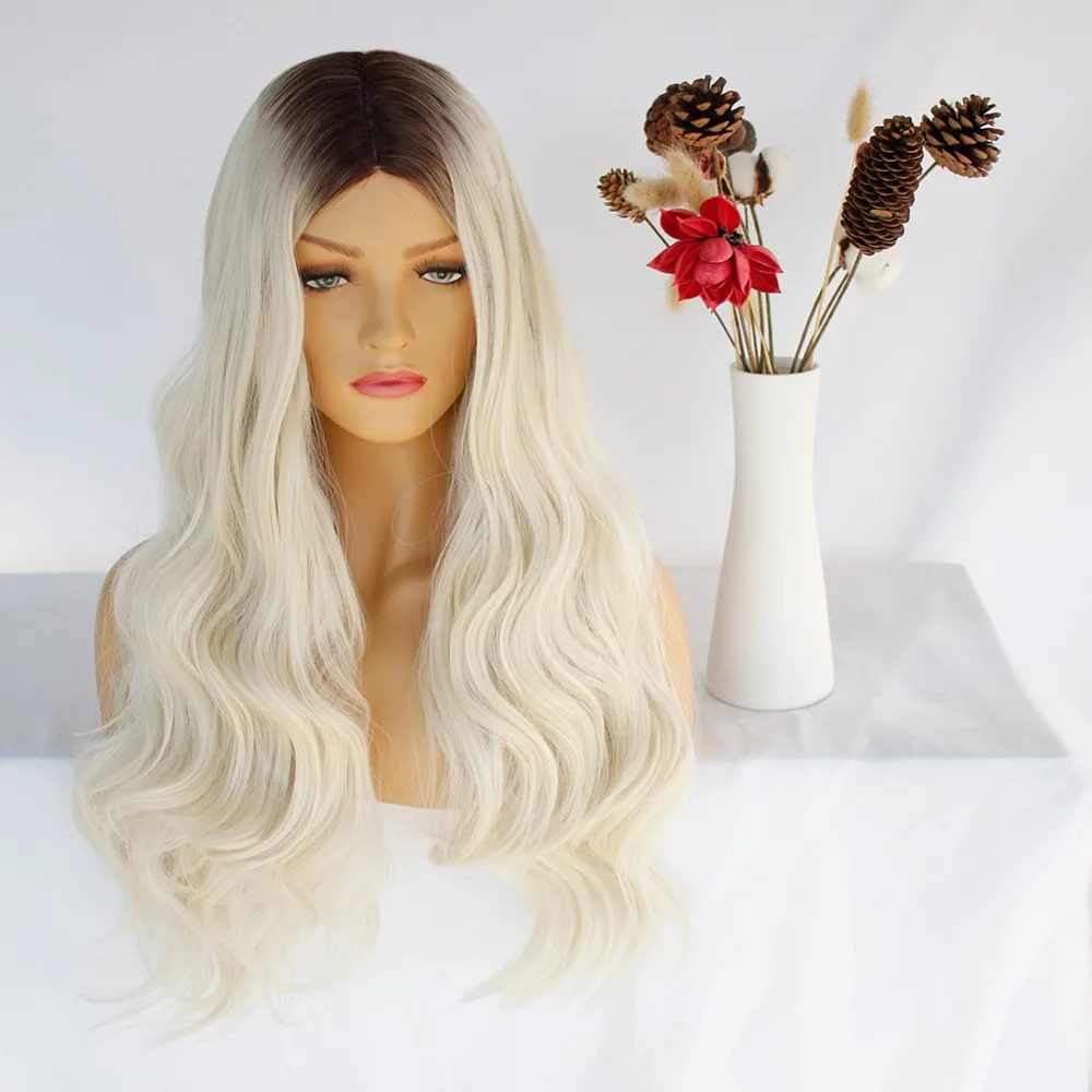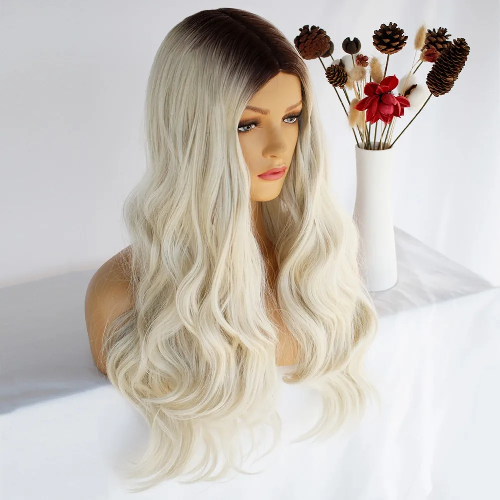 Ebingoo красивые длинные волнистые женские парики средняя часть боковые волосы Омбре синтетические парики Платиновые светлые парики термостойкие