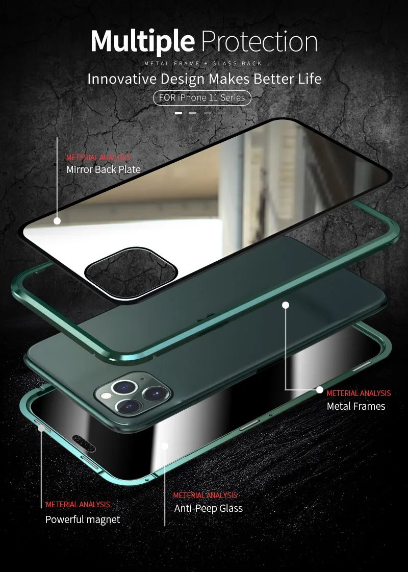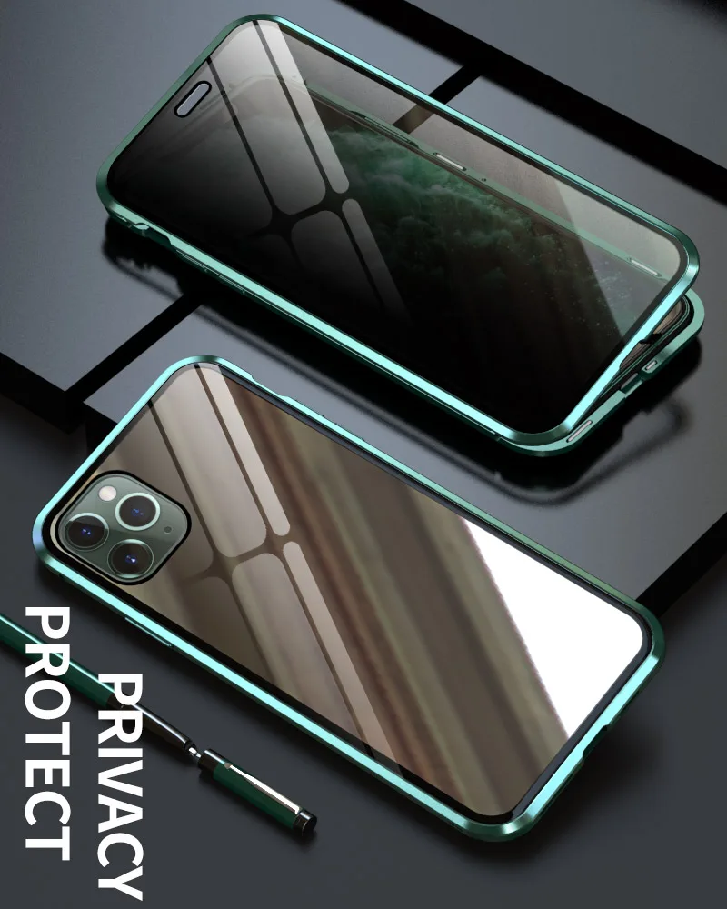 Магнитные чехлы из закаленного стекла для Iphone 11 Pro Max, 5,8, 6,1, 6,5 дюйма, противошпионский металлический магнитный чехол