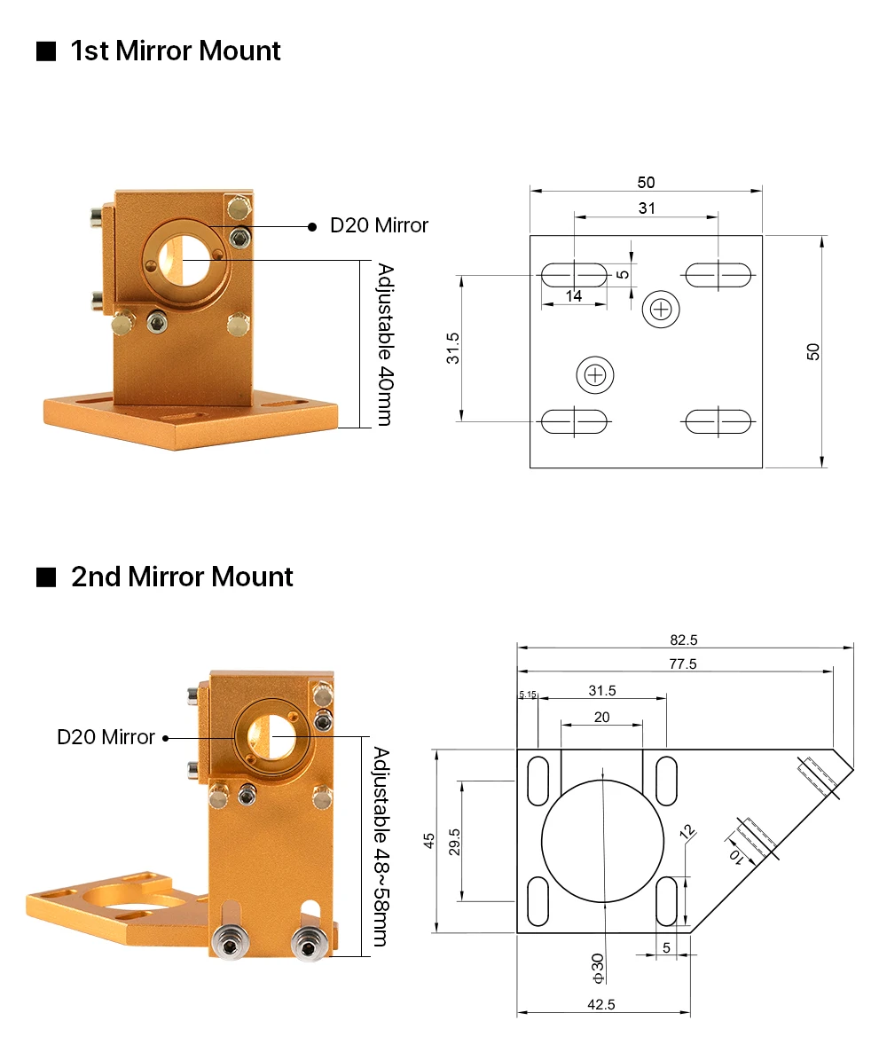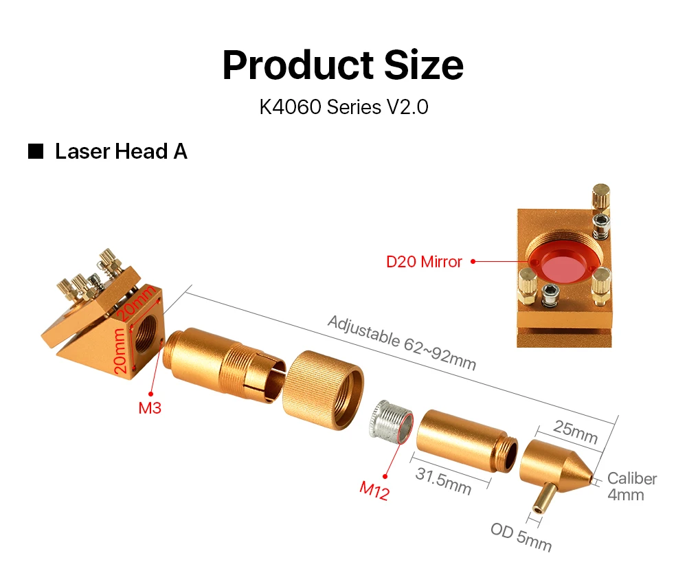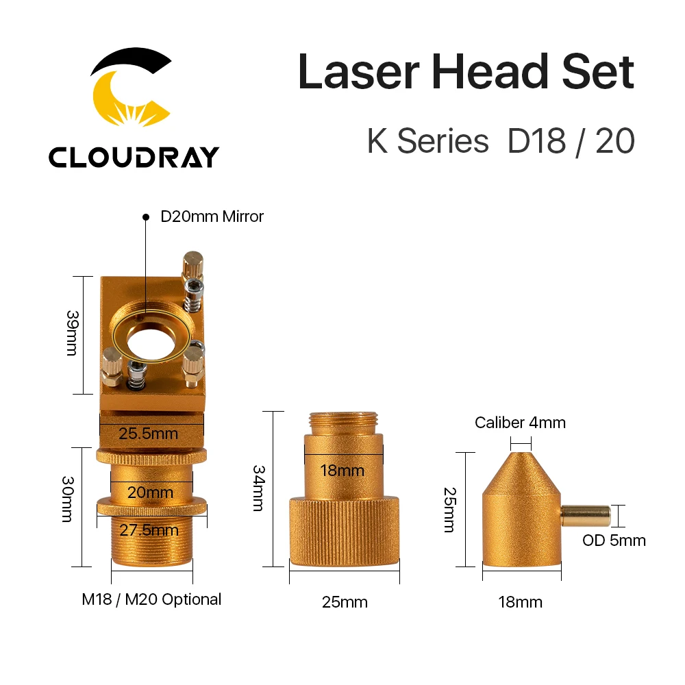 Лазерная головка Cloudray K Series CO2, набор линз диаметром 121820 мм, диаметр зеркала 20 мм для лазерной гравировки 20304060K40