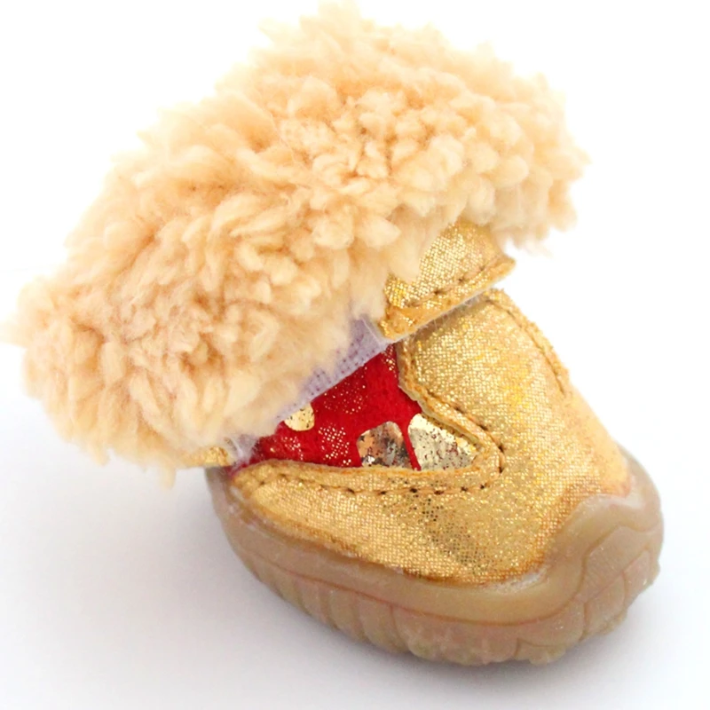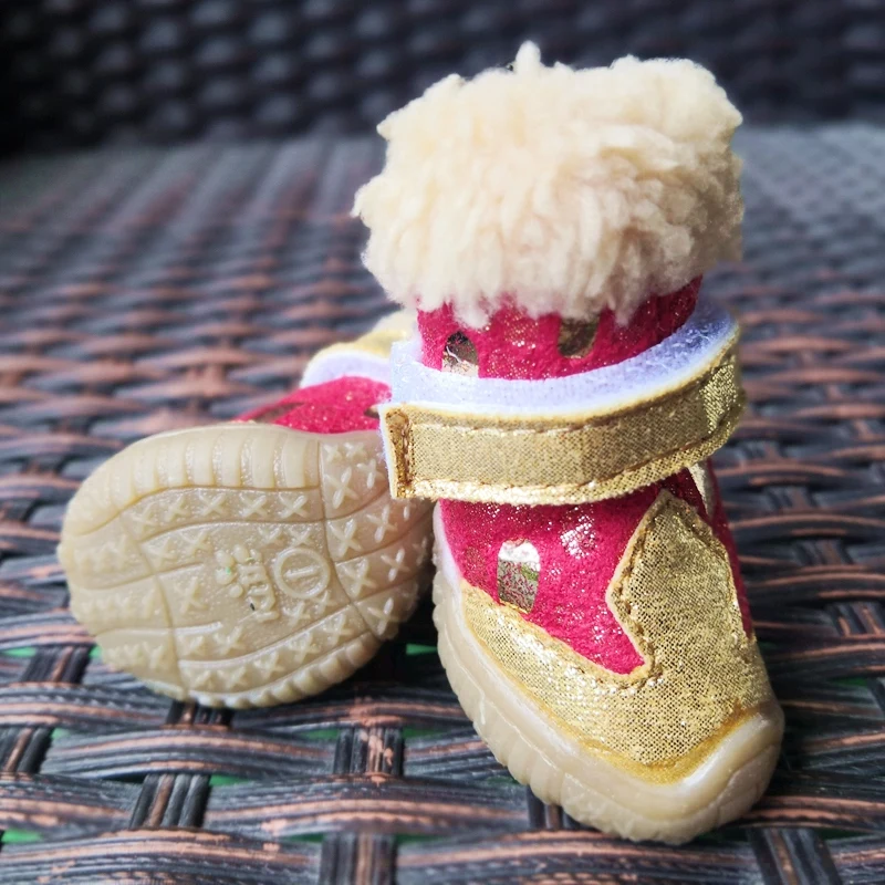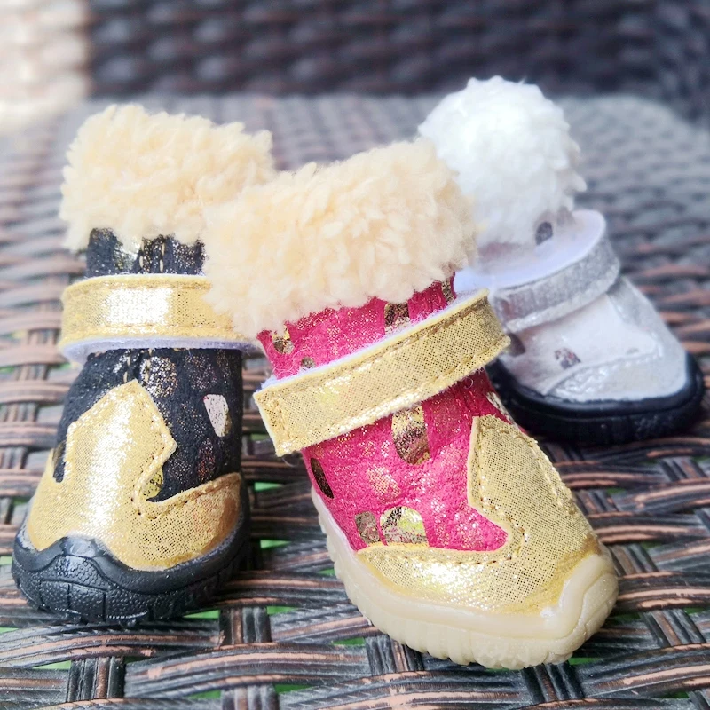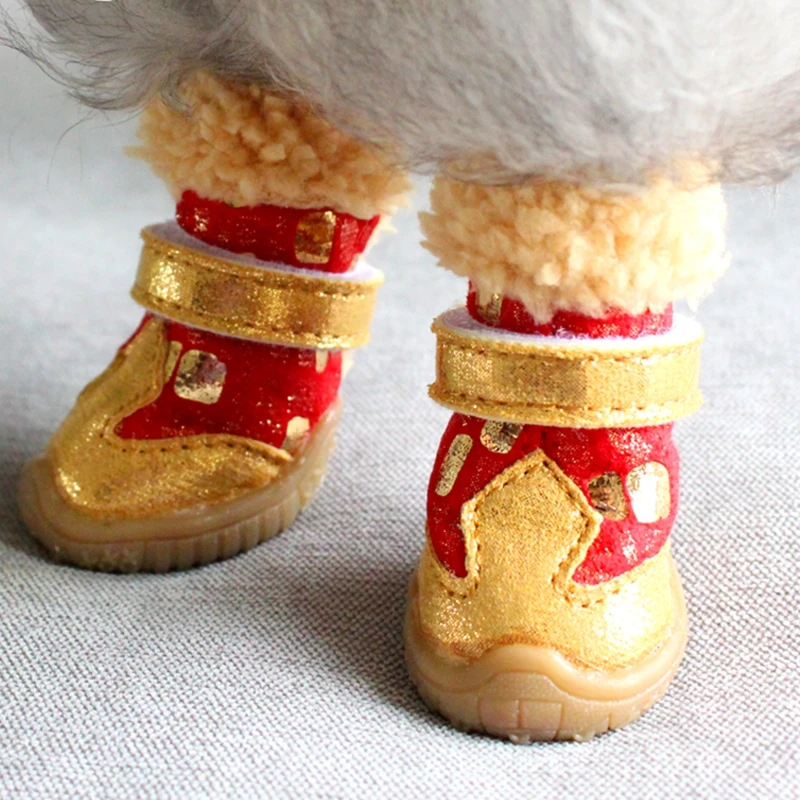 Обувь с золотыми украшениями для чихуахуа, йоркширской собаки; Повседневная зимняя обувь красного и черного цвета с мехом из искусственной кожи; Обувь для животных; Обувь для ухода за щенком питбулом таксой