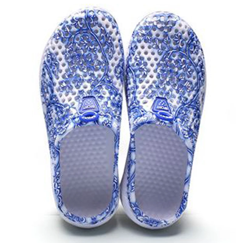 Женские летние пляжные шлепанцы, синие и белые дышащие сетчатые шле...