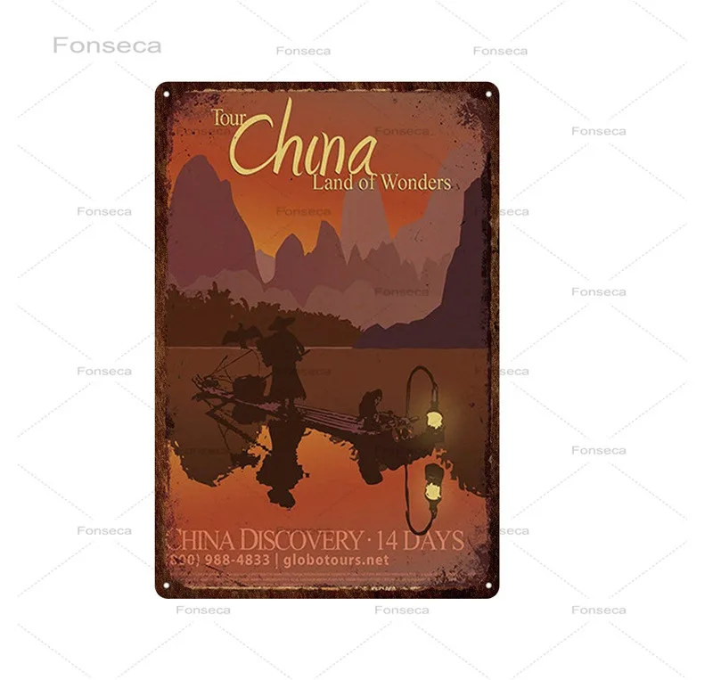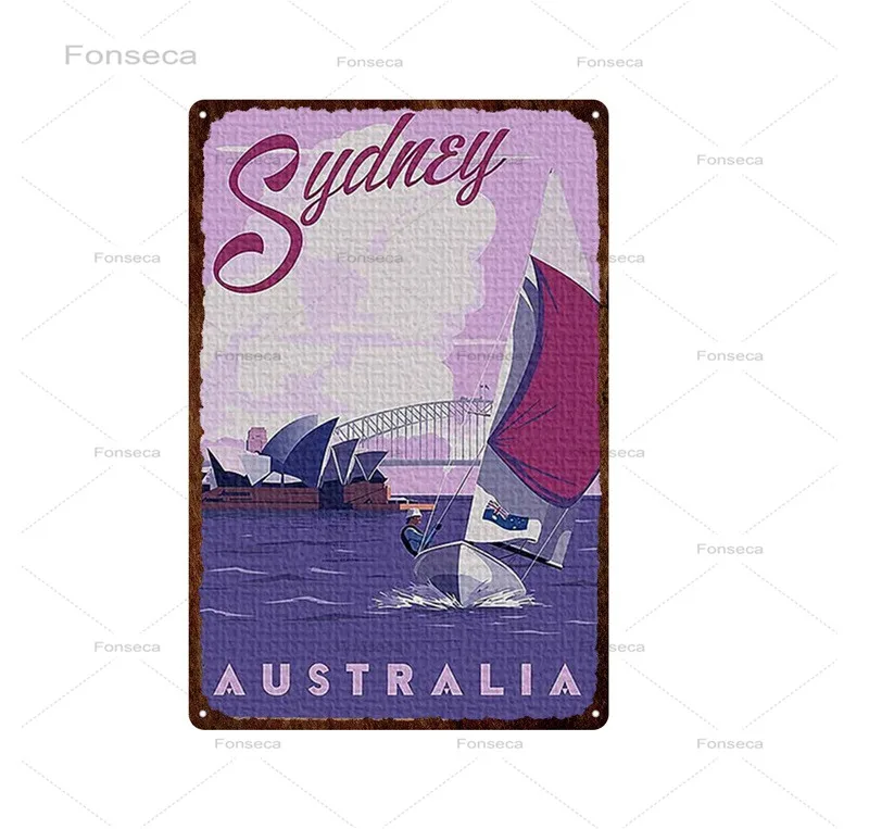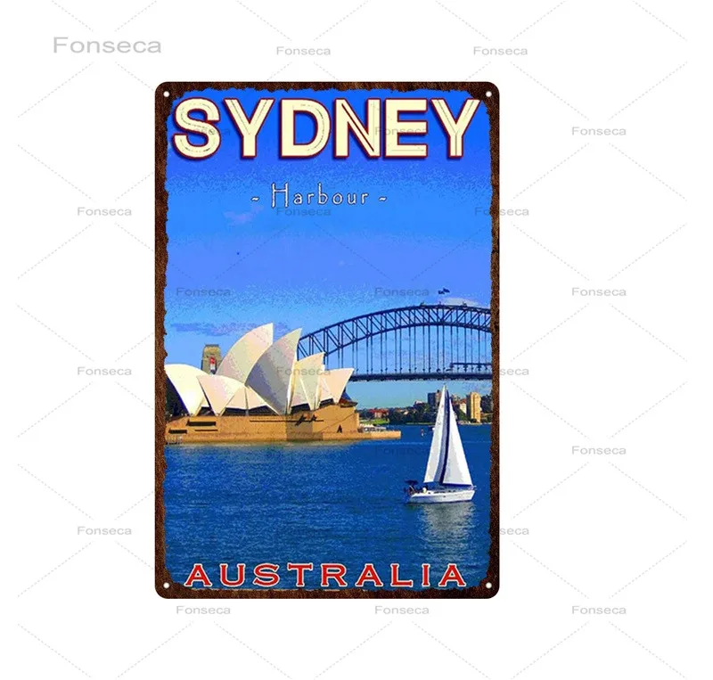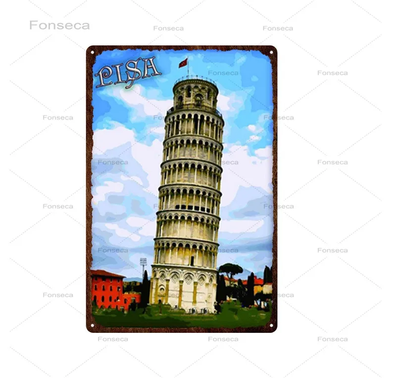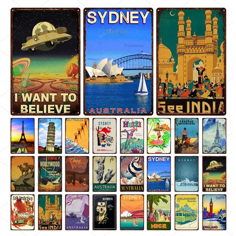 Знаменитый городской пейзаж, винтажный металлический жестяной знак,...