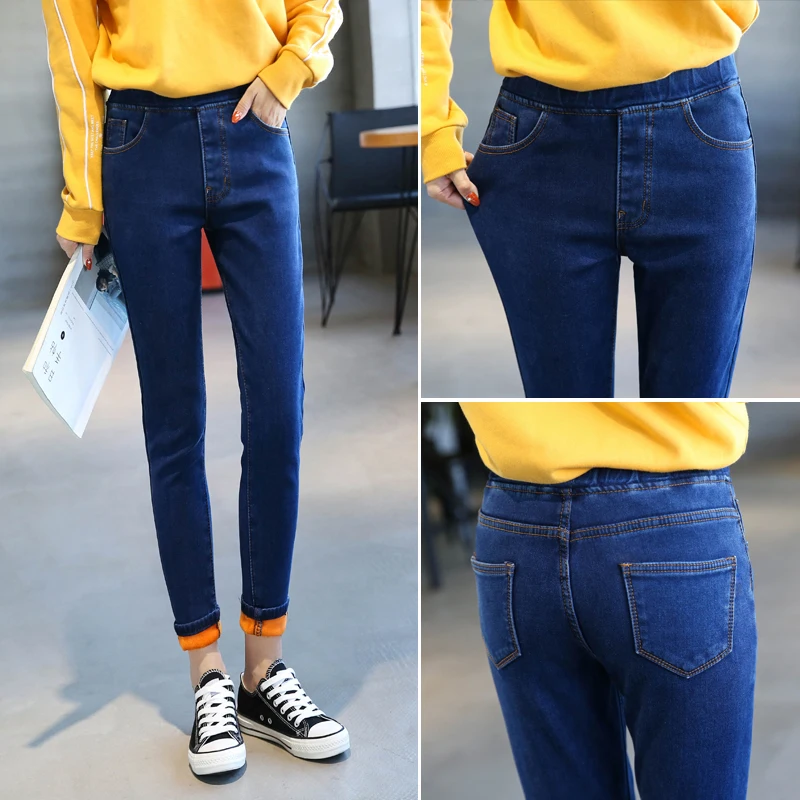 Женские теплые джинсы с высокой талией, осенне-зимние брюки-карандаш