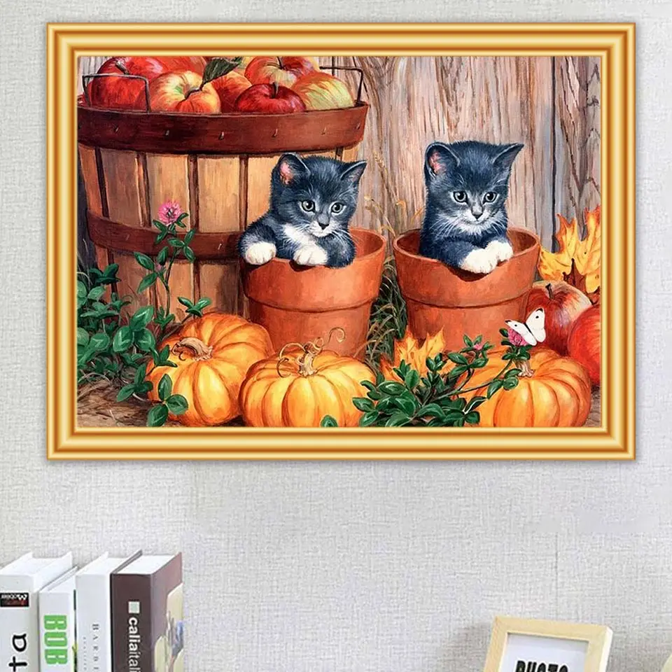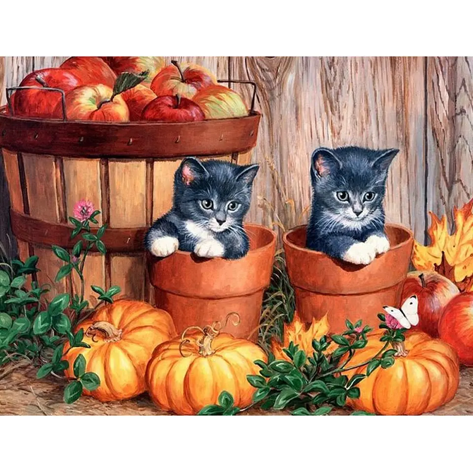 5D алмазная живопись полный квадратный котенок Тыква вышивка крестиком Алмазная вышивка животные мозаика картина Стразы домашний декор