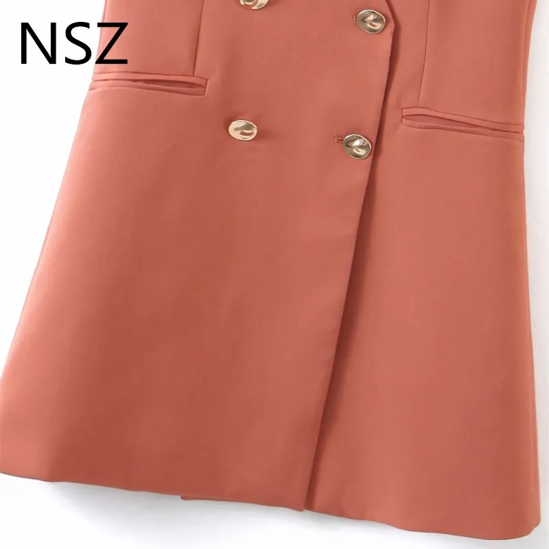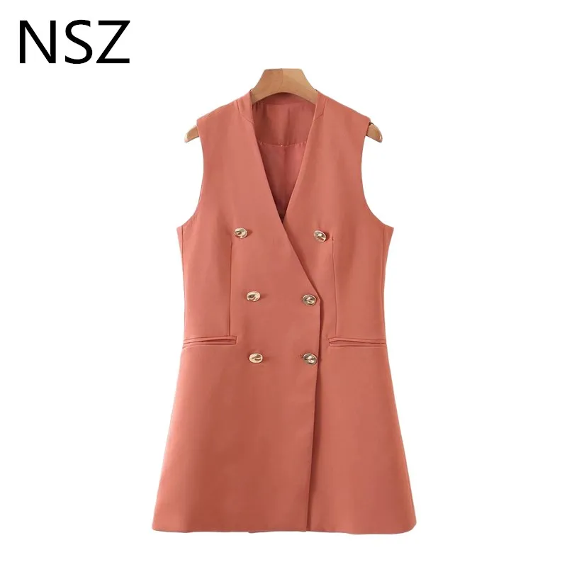 Женский двубортный блейзер без рукавов NSZ, модный элегантный жилет для офиса, осень