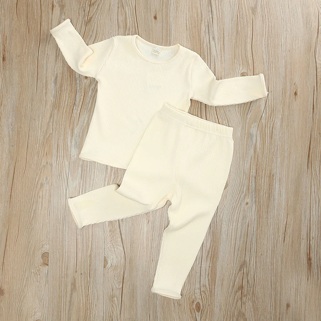 Новейший хлопковый комплект одежды из 2 предметов для маленьких мальчиков и девочек, топ в рубчик с длинными рукавами + штаны, повседневная одежда для малышей