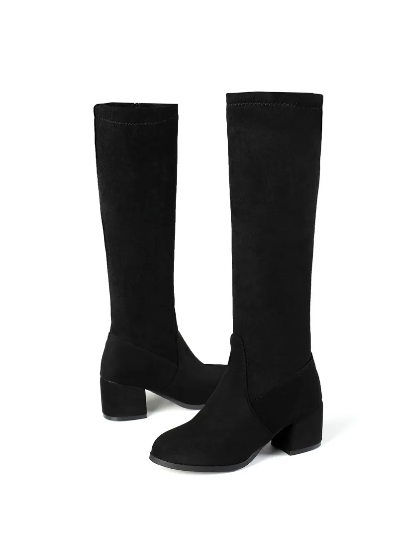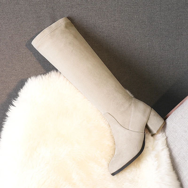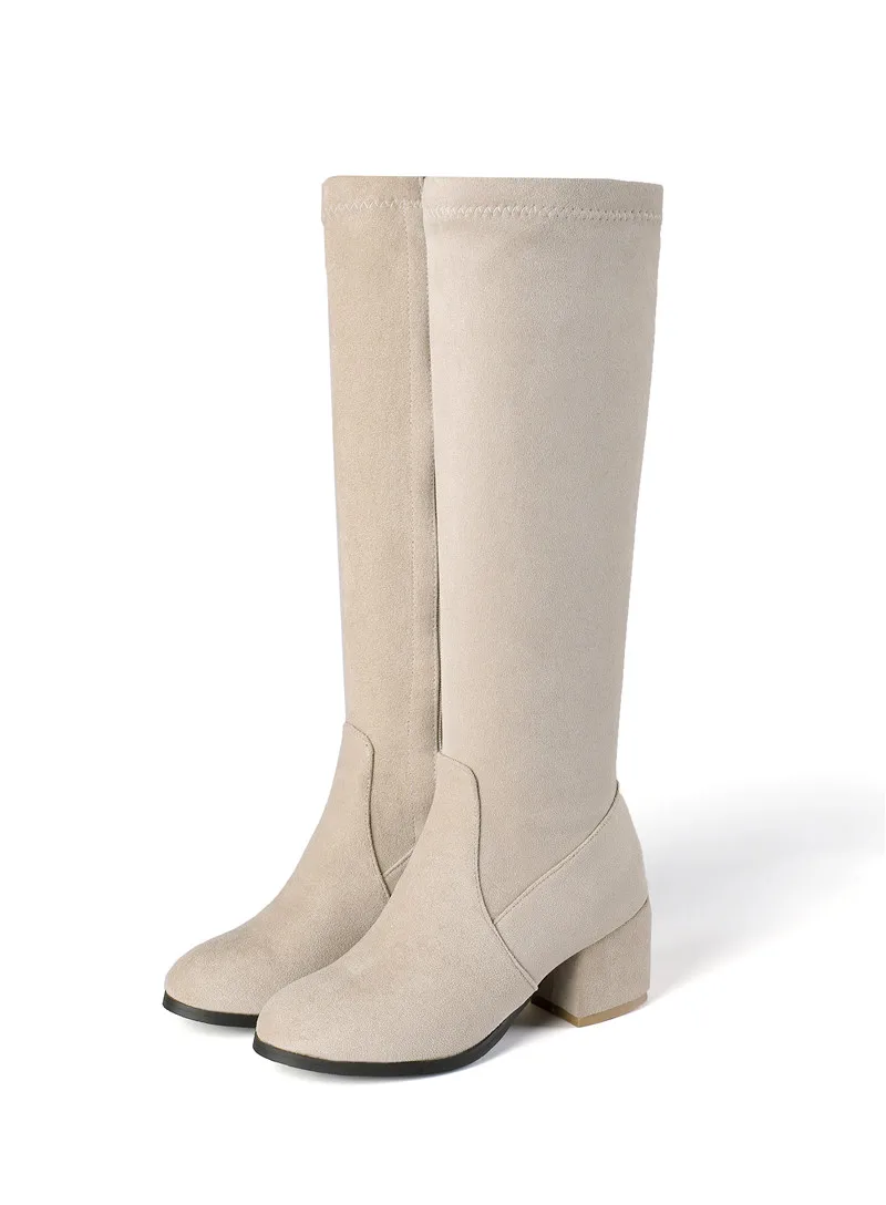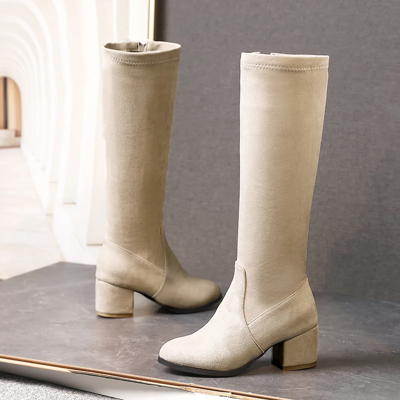 Женские сапоги до колена MORAZORA, черные или белые сапоги до колена, на толстом высоком каблуке, с круглым носком, зима 2021