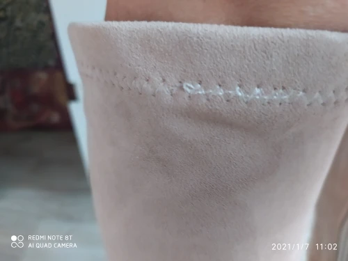 Я уже оставила отзыв. сапоги из замши,очень мягкие,удобные и красивые! Мне очень понравились,в них можно много ходить,небольшой каблук и легкие сапоги. Красиво и в юбке,платье и в узких брюках.и этот бежевый цвет очень украшает. Спасибо продавцу!!!