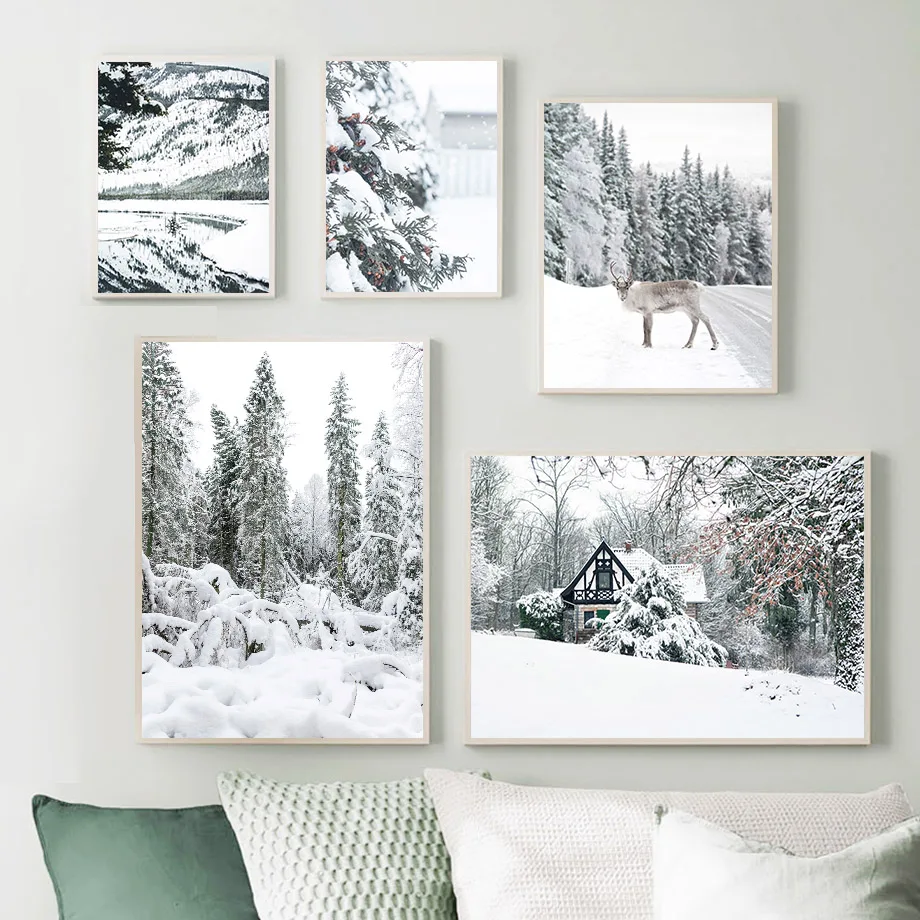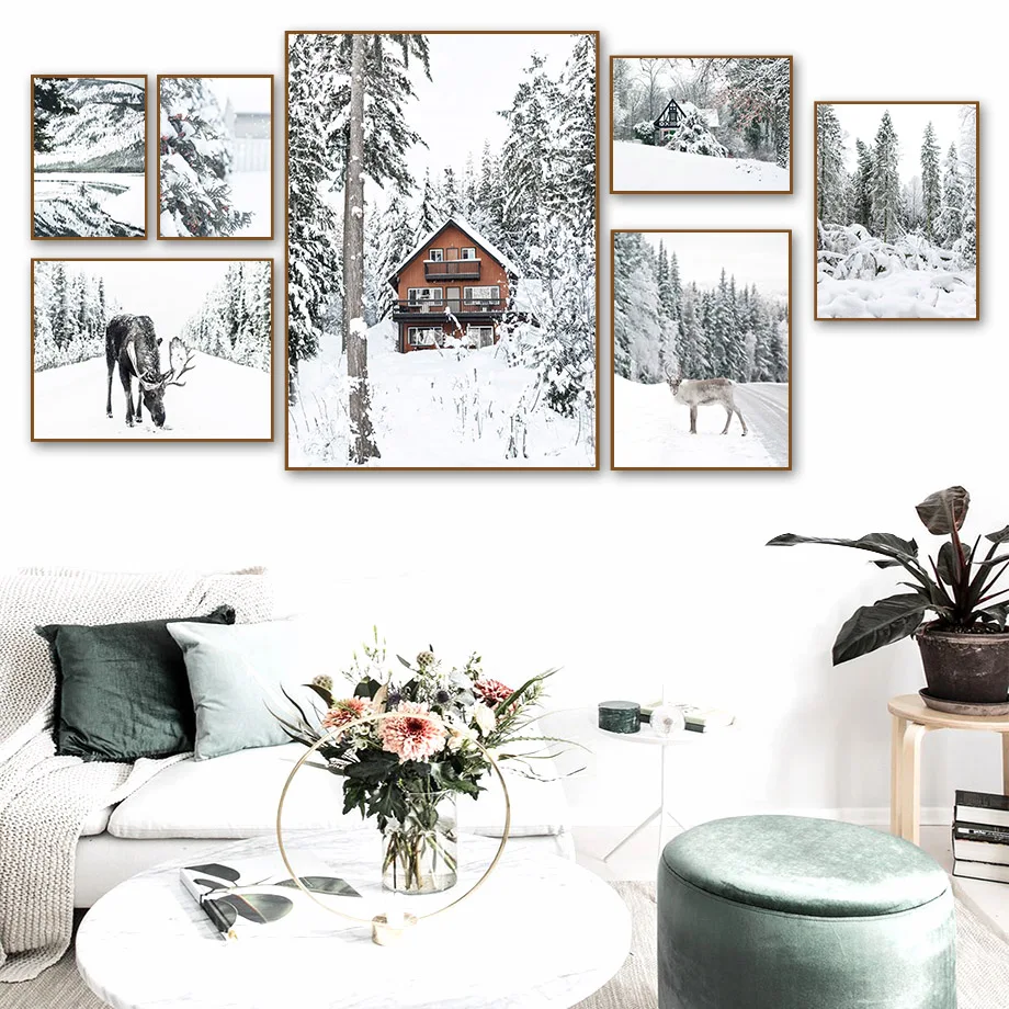 Настенная картина в скандинавском стиле с изображением зимнего пейз...
