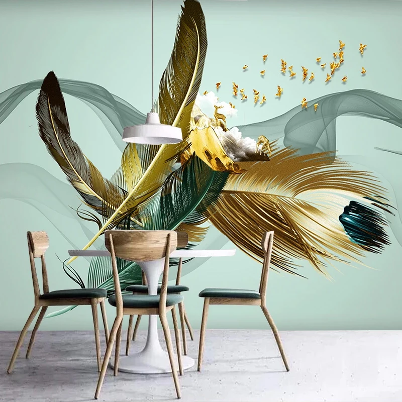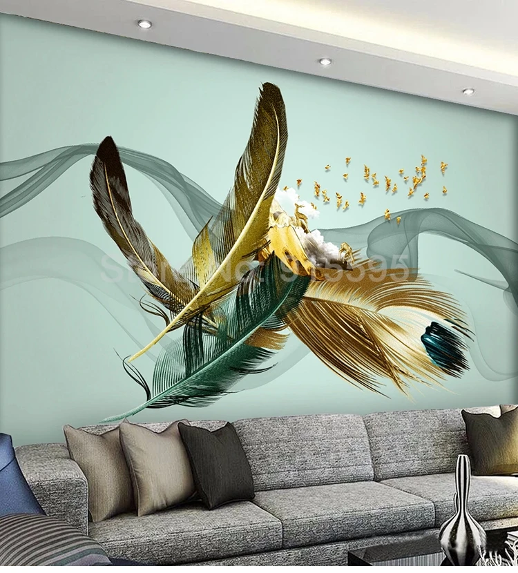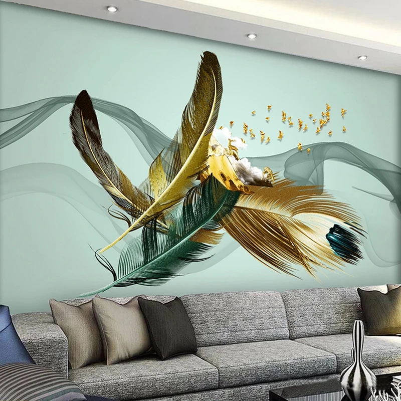 Фотообои на заказ, ручная роспись, перья, современные, модные, креа...