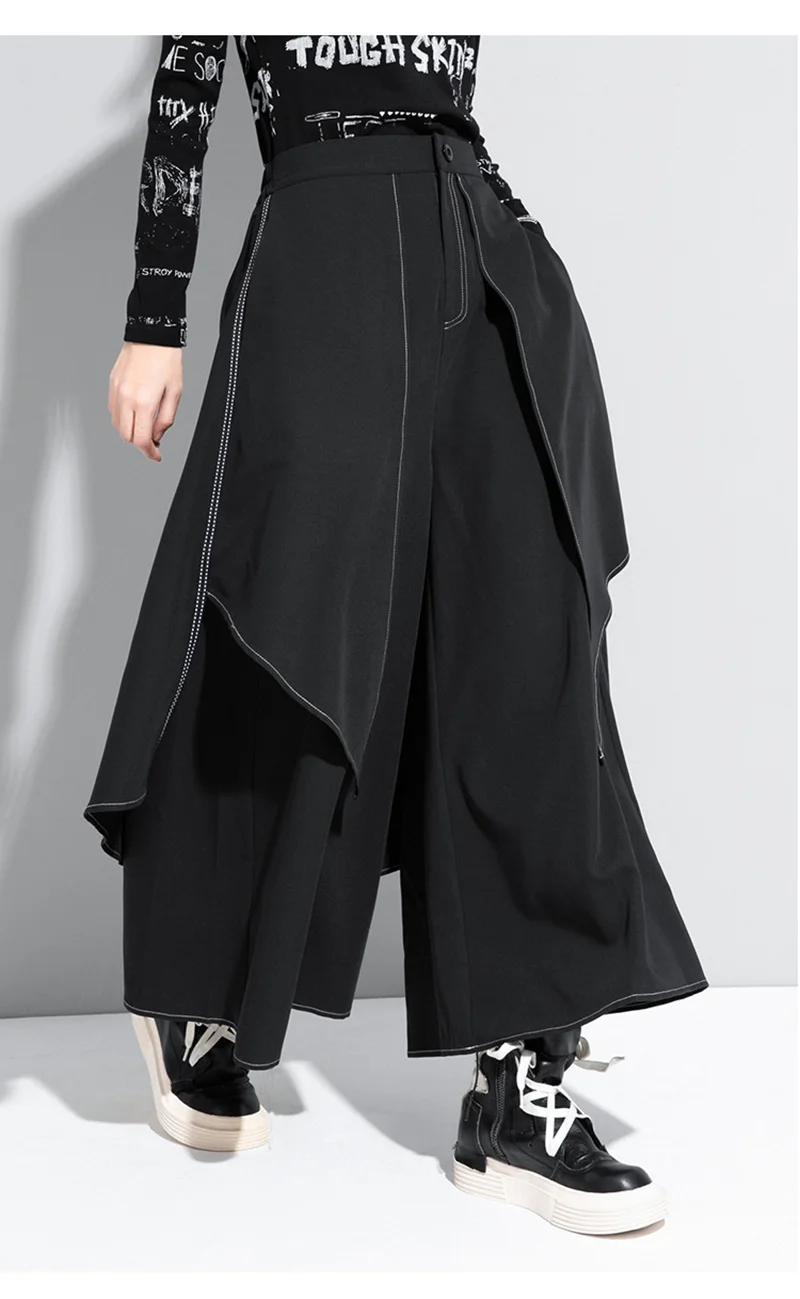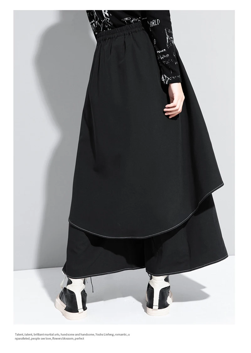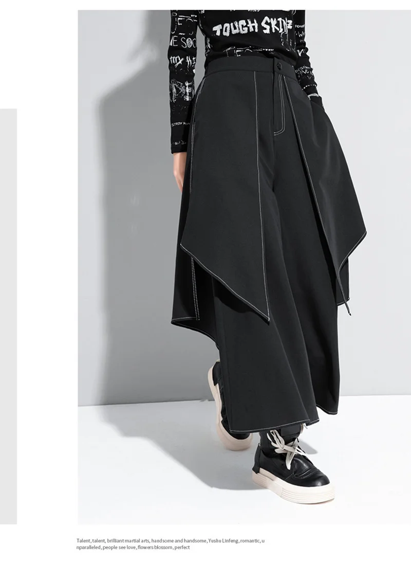 EAM Черные льняные брюки с высокой талией, с разрезом, длинные широкие брюки, новые свободные брюки, женские модные брюки, весна-осень 2022, 1DA613