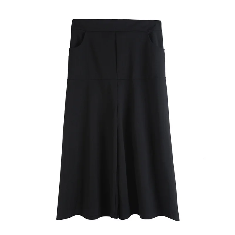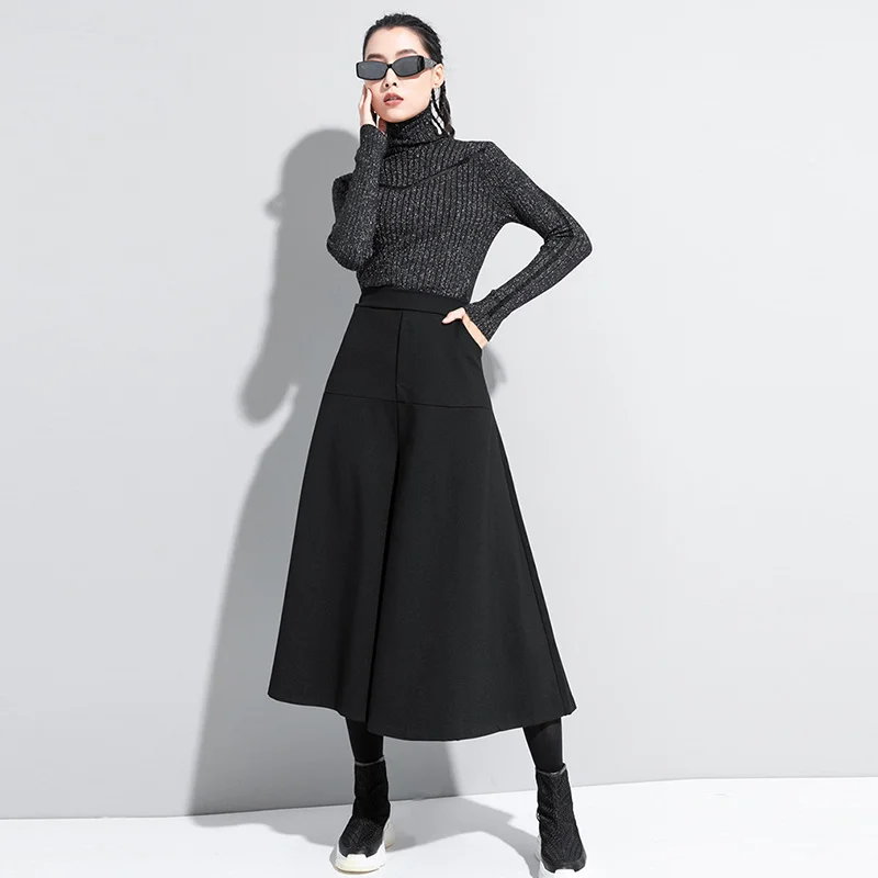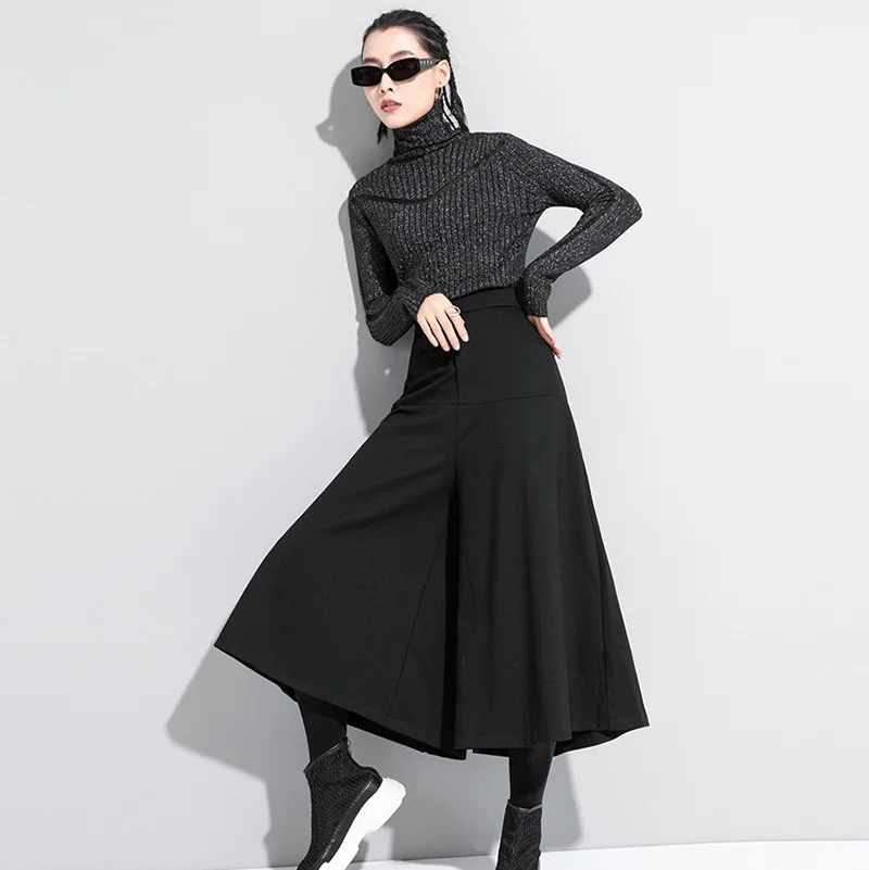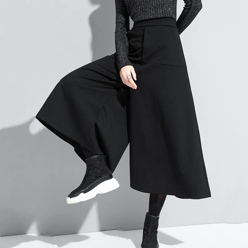 EAM Черные Короткие Длинные широкие брюки с высокой эластичной талией, новые свободные женские брюки, модные весенне-осенние 2022 1DA610