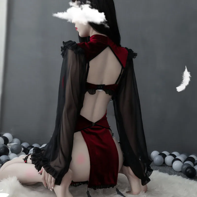 Готический Темный Ретро ведьмы сексуальный шелковый рукав Cheongsam сексуальный комплект белья ведьмы косплей игра одежда бандаж Хэллоуин костюм
