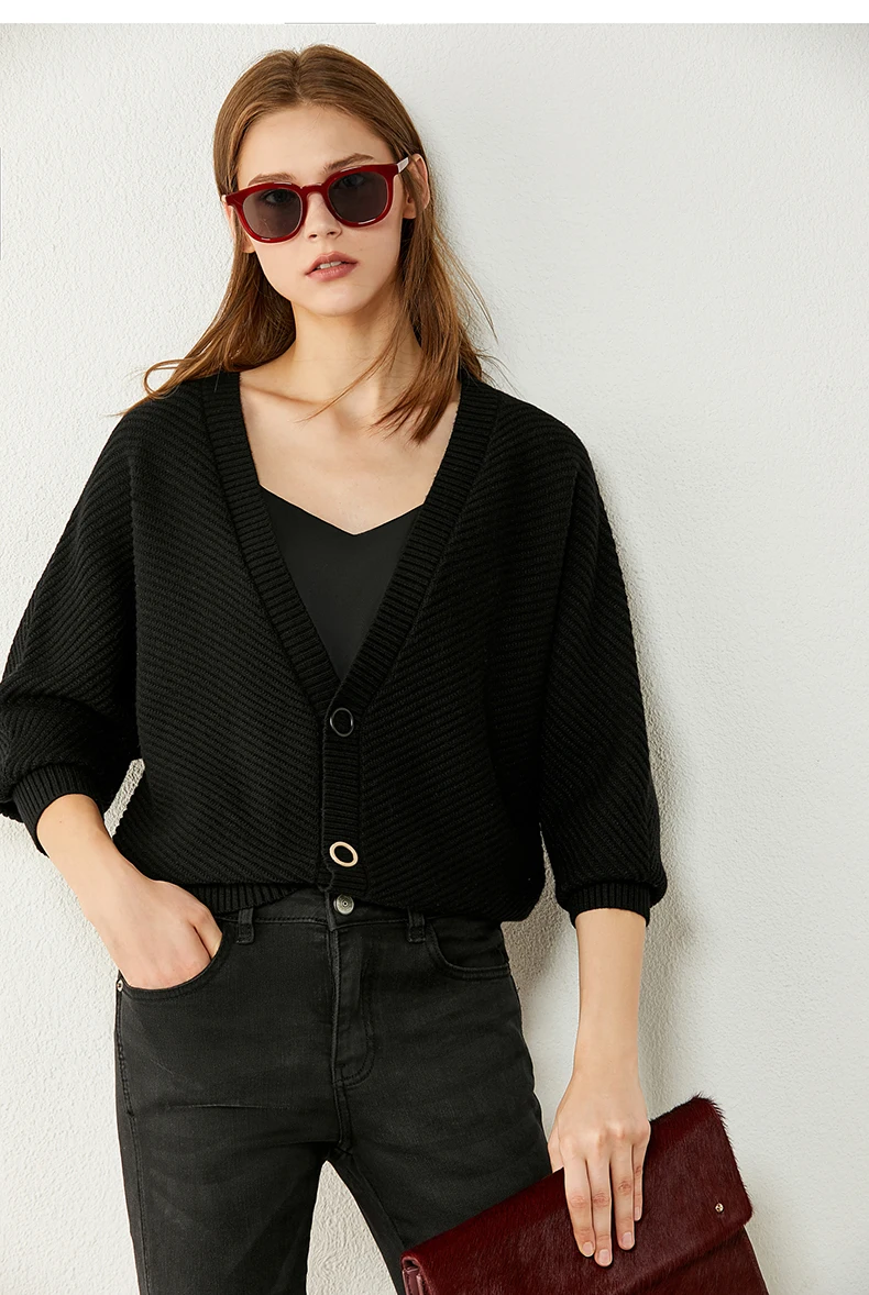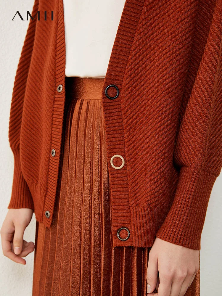 Amii минимализм осенние зимние кардиганы для женщин повседневный однотонный полосатый Свободный Вязаный Кардиган с длинным рукавом Женские топы 12040909