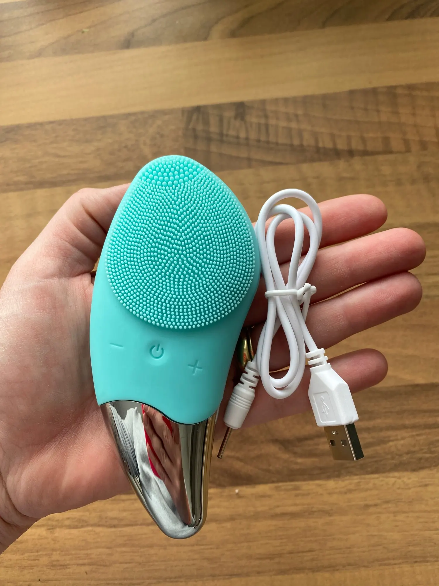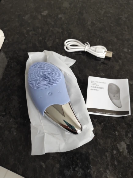 Щеточка полностью оправдала ожидания. Она очень красивая, именно мятного цвета, как и на картинке. Силикон приятный и мягкий. Есть несколько режимов работы - можно увеличивать или уменьшать вибрацию. Прекрасно очищает лицо. Металлическую часть щетки можно использовать для массажа - типа скребка гуаша. Посылка дошла в Украину менее чем за месяц. В комплекте идет провод для зарядки, щеточка пришла заряженая. Товар и продавца рекомендую.