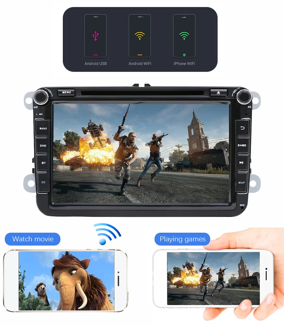 Поддержка зеркальной связи для устройств Android и IOS через usb-кабель или WIFI. Даже достичь взаимного контроля между этим устройством и вашим телефоном