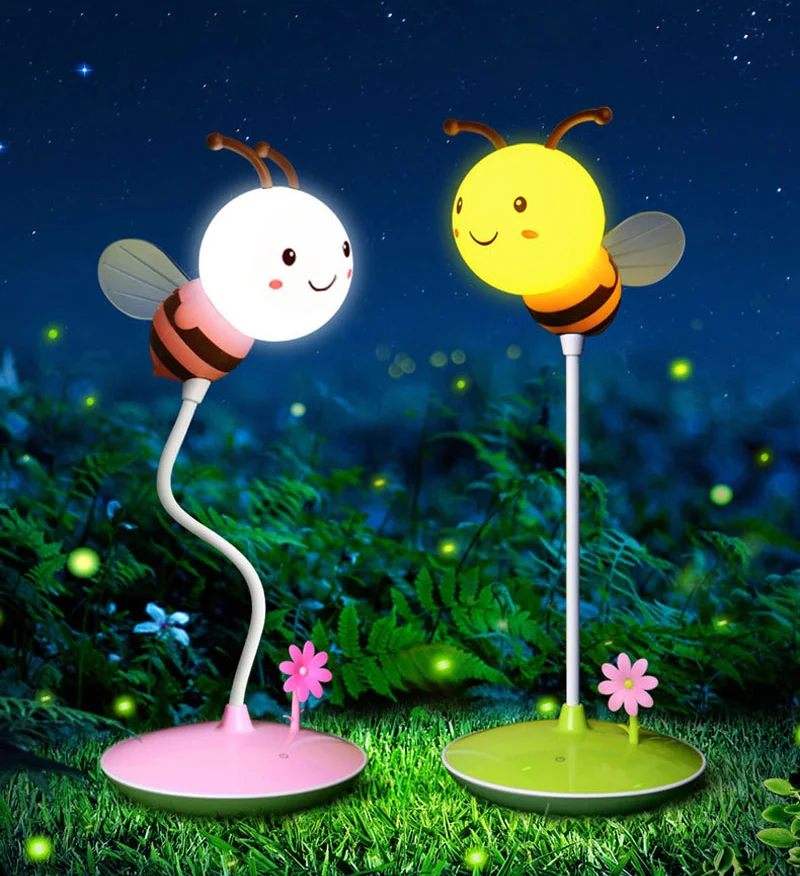 Ночник с USB-зарядкой, сенсорный мультяшный ночник с милой Пчелой, приглушаемый светильник для чтения, настольная лампа для детей, прикроватный подарок для детской комнаты