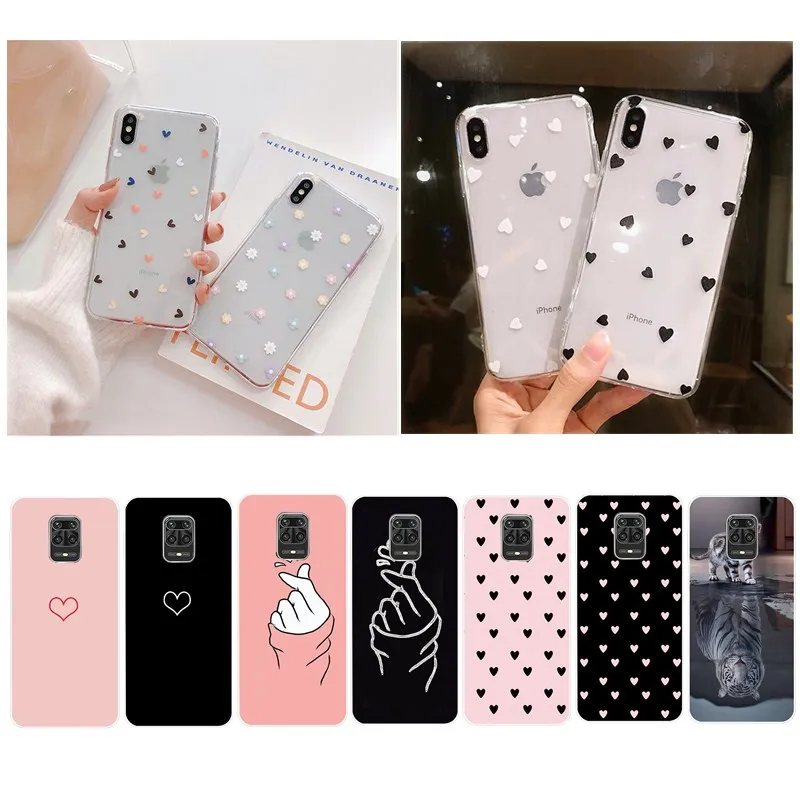 Прозрачный чехол с цветами для Xiaomi Redmi Note 9s 9 8 7 Pro, силиконовый мягкий чехол с сердечками для телефона Xiaomi Redmi 8 9A 8A 7A 5A