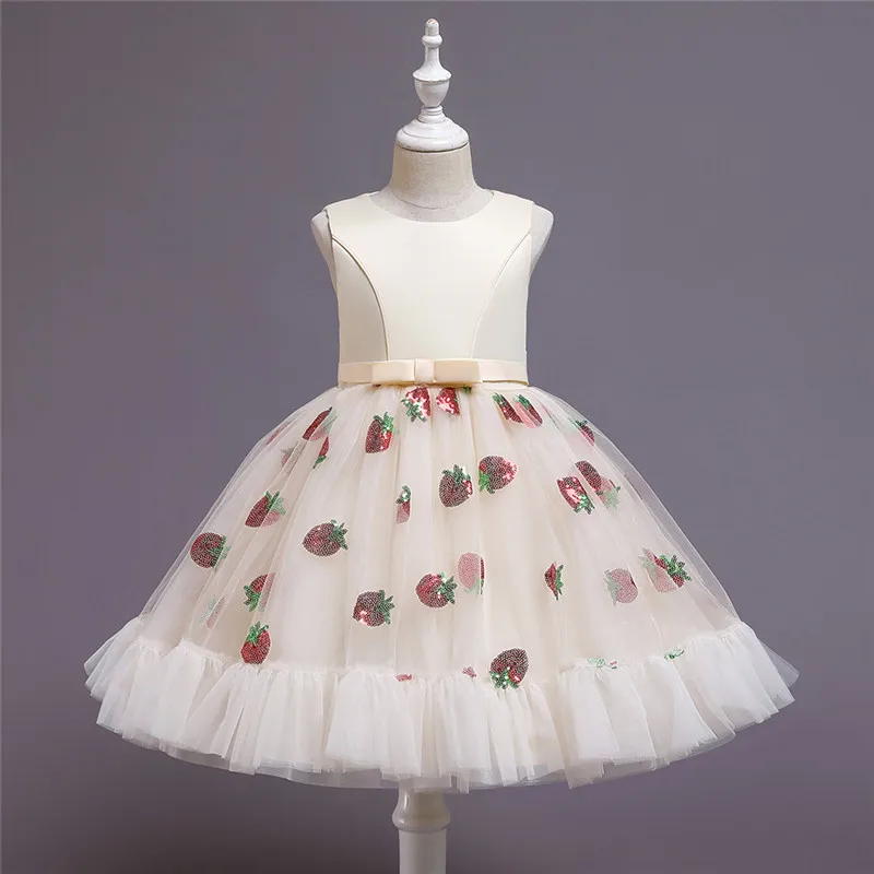 Новое рождественское платье принцессы с клубничкой для девочек плат...