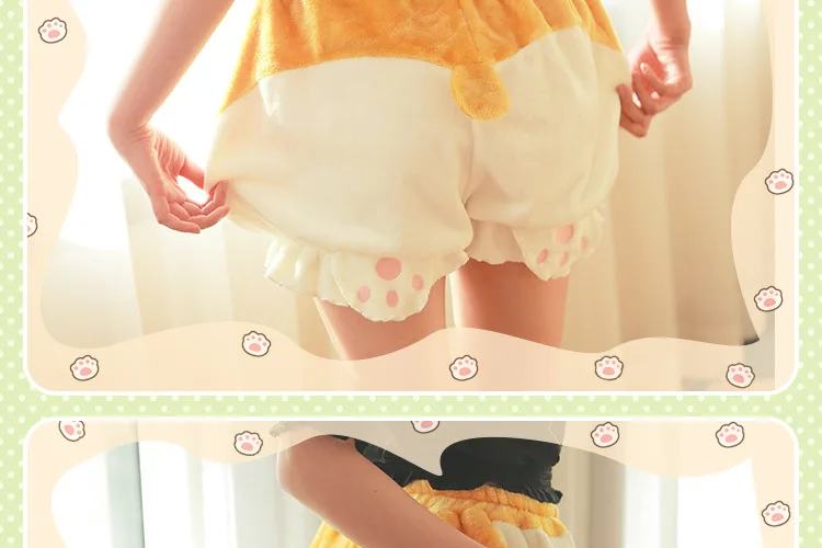 Пижама женская В Стиле Лолита, милые флисовые Шорты для сна в стиле Харадзюку, шорты-корги с тыквами, с эластичным поясом, для девочек