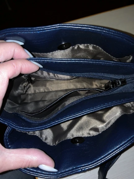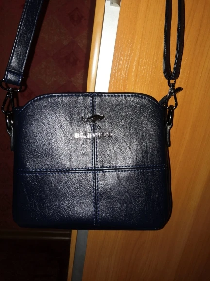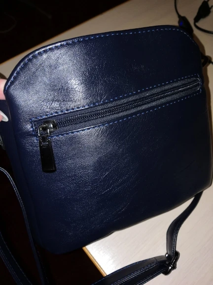 Сумочка хорошенькая, но совсем маленькая. Кожзам очень мягкий , приятный на ощупь,. Выглядит как натуральная кожа качество отличное, все очень аккуратно и достойно.. цвет очень темный , почти чёрный. Когда распечаталась упаковку, думала что перепутали цвет и положили чёрную. Разглядела тольптипии очень сильном свете, что она синяя. Карманчиков много , но все они совсем маленькие. Основное отделение в центре закрывается на молнию, два боковых на магнитные кнопки. В сумку войдёт большой кошелёк, телефон, визитница, , паспорт , помада маленькое зеркальце, ключи от квартиры, машины. . Думаю больше не влезет ничего. На моем фото сравнение с чёрной сумкой.