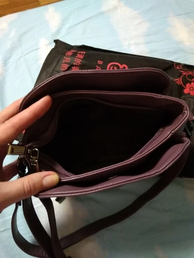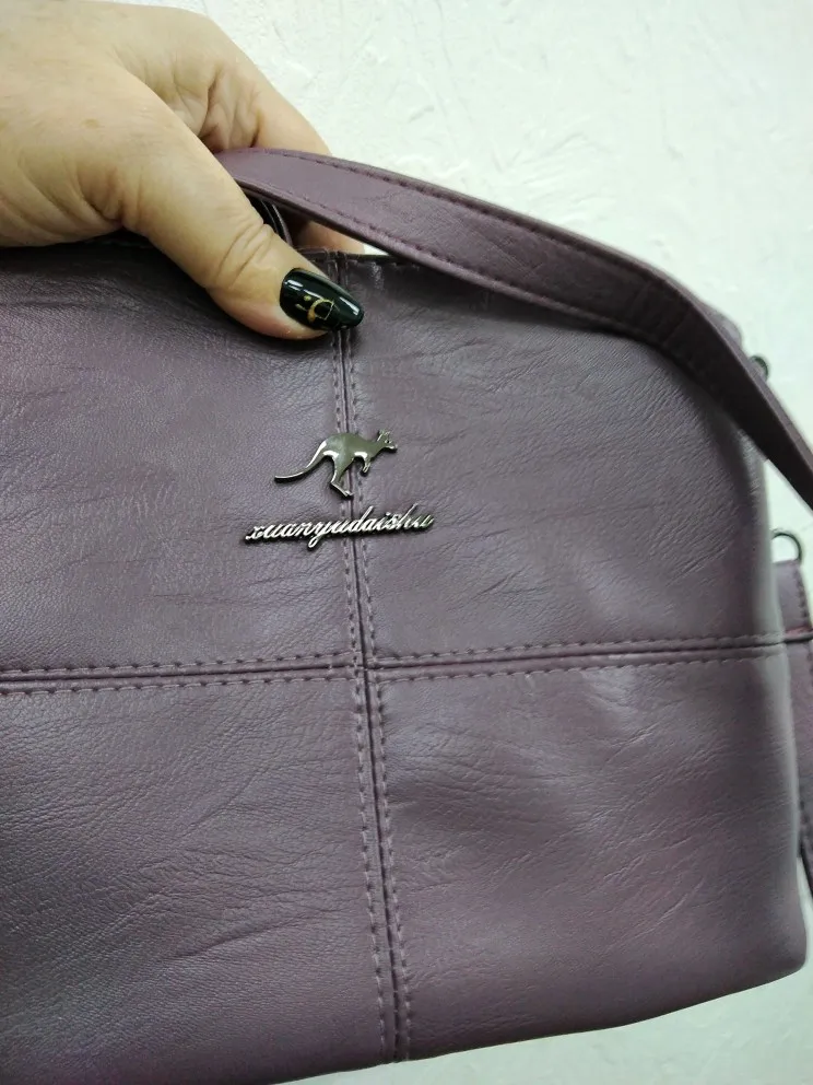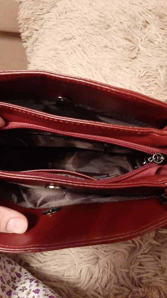 Отличная сумочка! Полностью соответствует описанию! Мягкий кожзам насыщенного бордового цвета (не мятого типа), два вида ремешков, хорошая отделка внутренних отделений (их много), приличная фурнитура, все замки рабочие, никаких торчащих ниток. Продавец аккуратно упаковал товар - внутри был пакет с воздухом, чтобы избежать заломов, все было защищено тканевой сумочкой и двумя пакетами. Доставили товар очень быстро - 10 дней. Продавец честный и аккуратный - можно смело заказывать у него товары!