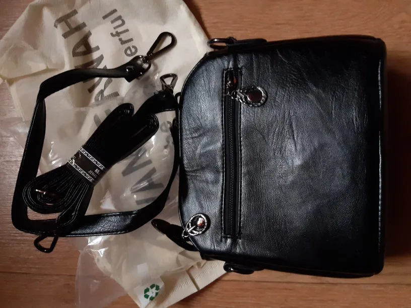 Сумочка порадовала. Маленькая, удобная со множеством отделений (3) и кармашков. Два ремешка :длинный и короткий. Упаковано было надежно с воздушным пакетом. Продавец положил в подарок резиночку. Спасибо большое!