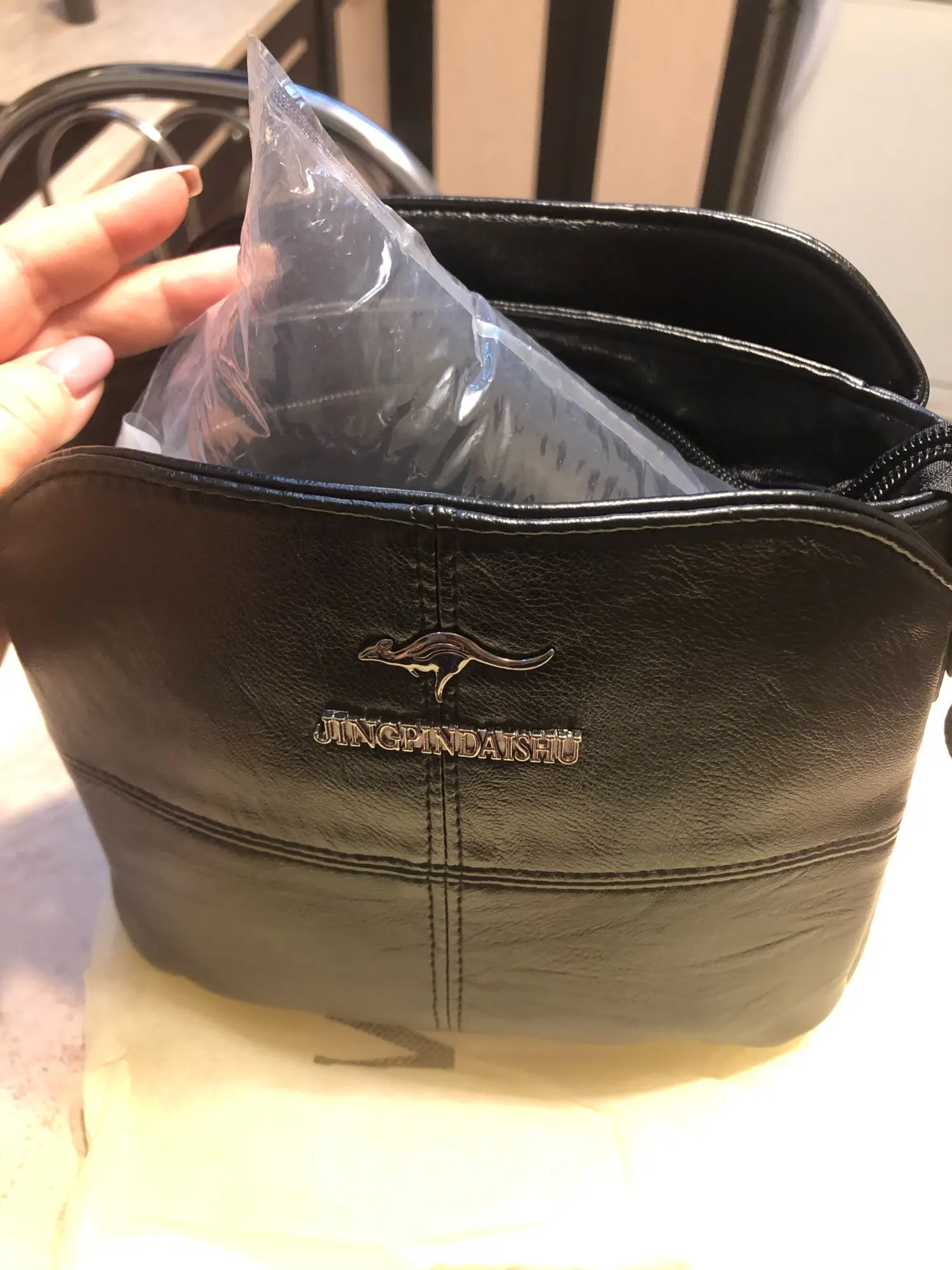 Молодцы , положили внутрь пакет надутый , чтобы сумка не помялся , соответствует всё , продавца рекомендую.