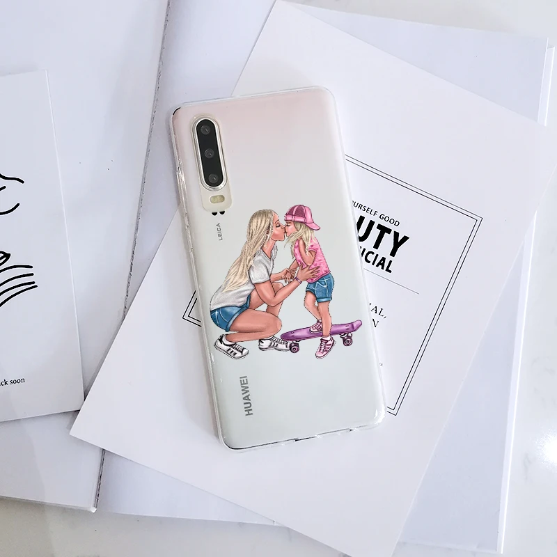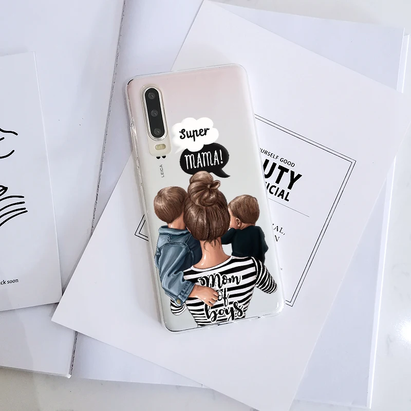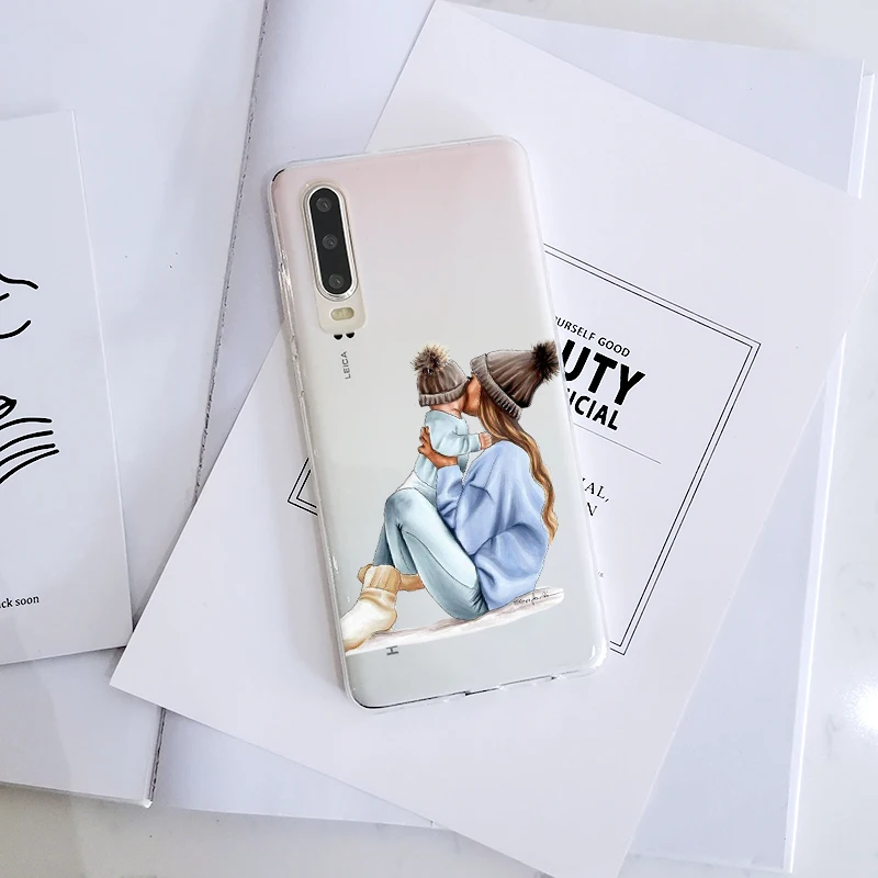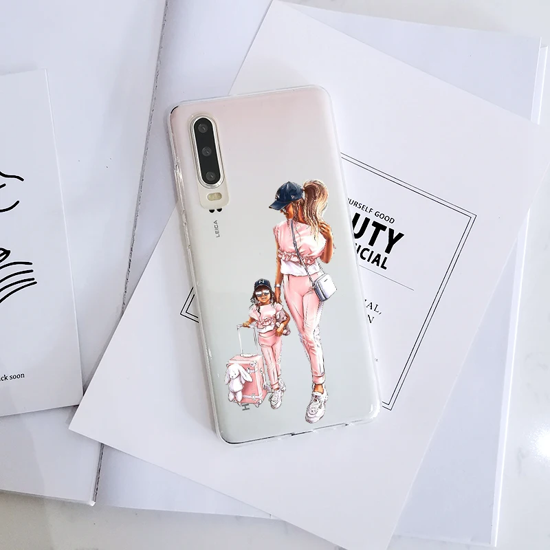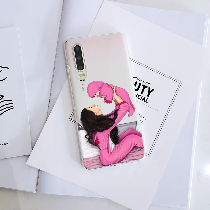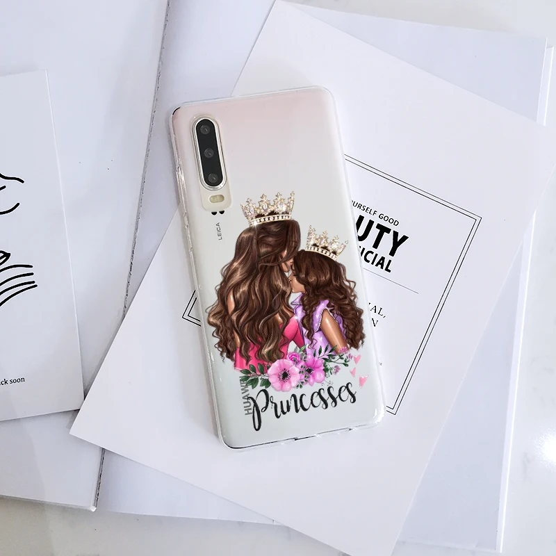 Fashion Black Brown Hair Baby Mom Girl Patterned Painted Phone Case
