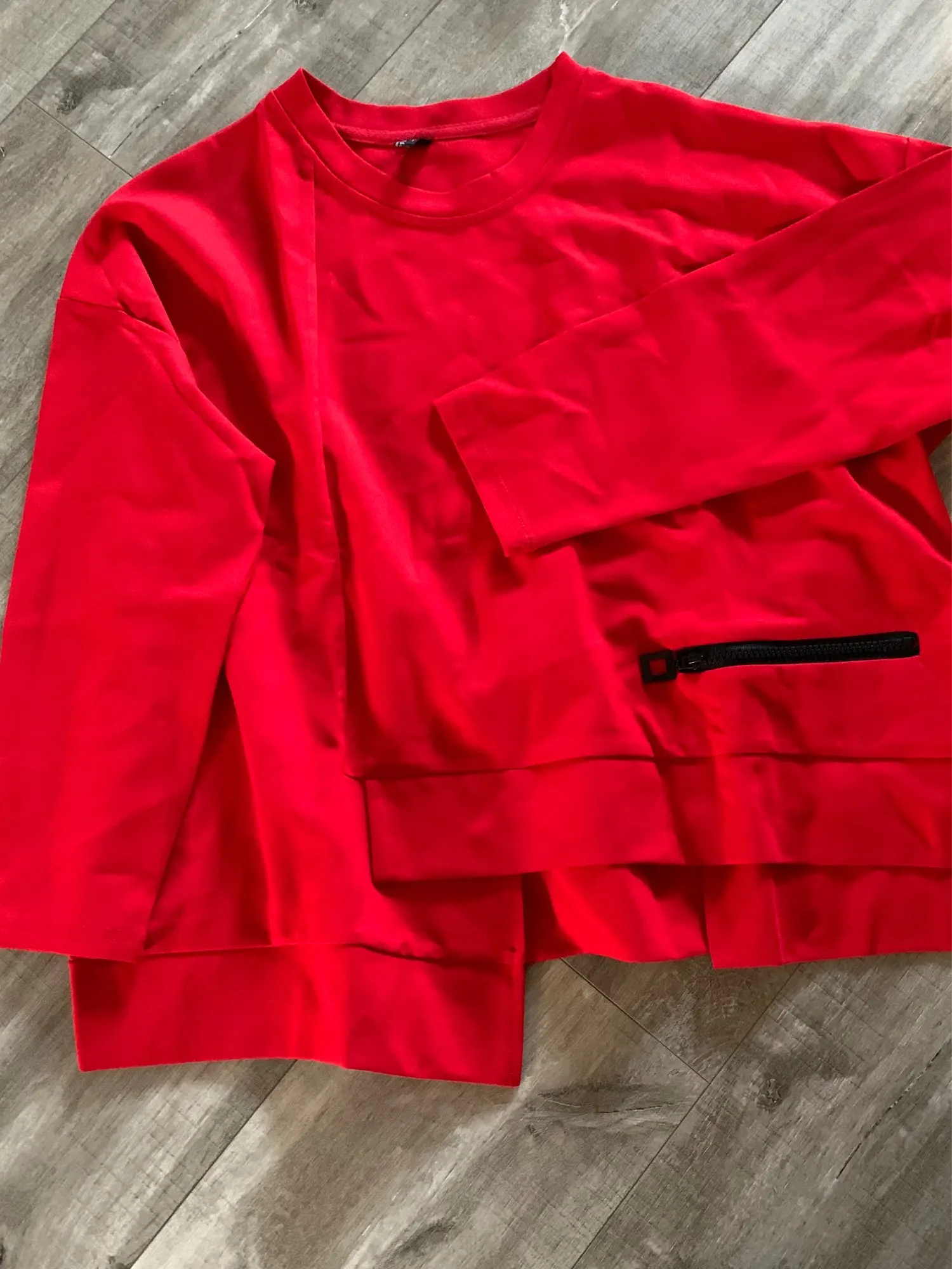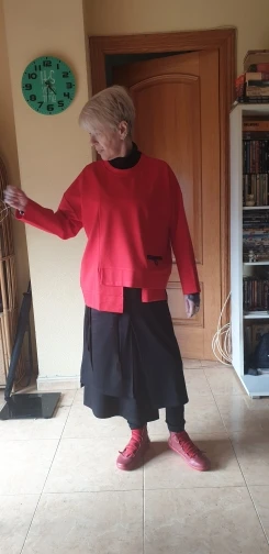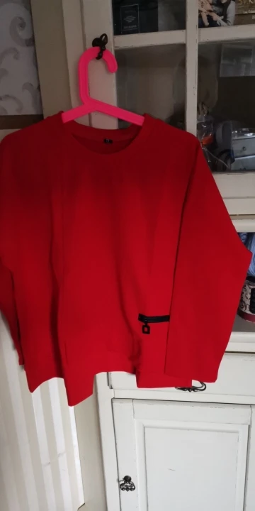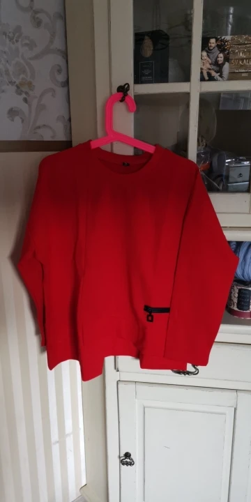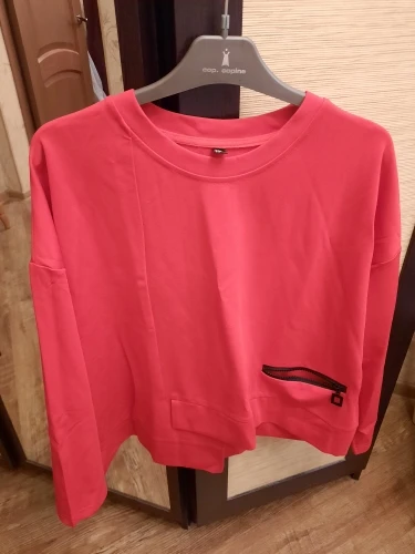 Я очень люблю этот магазин. Все товары ексклюзивного дизайна. кофта стоит своих денег. цвет насыщенно алый,крой прикольный. мой рост 172,вес 73,обьм груди 102, на мне кофта выглядит легким оверсайзом,рукава чуть коротковаты,но это мне совершенно не мешает,ткань тяжолая,падает отлично,думаю, что часть составляющей синтетика . я очень покупкой довольна,как и всегда