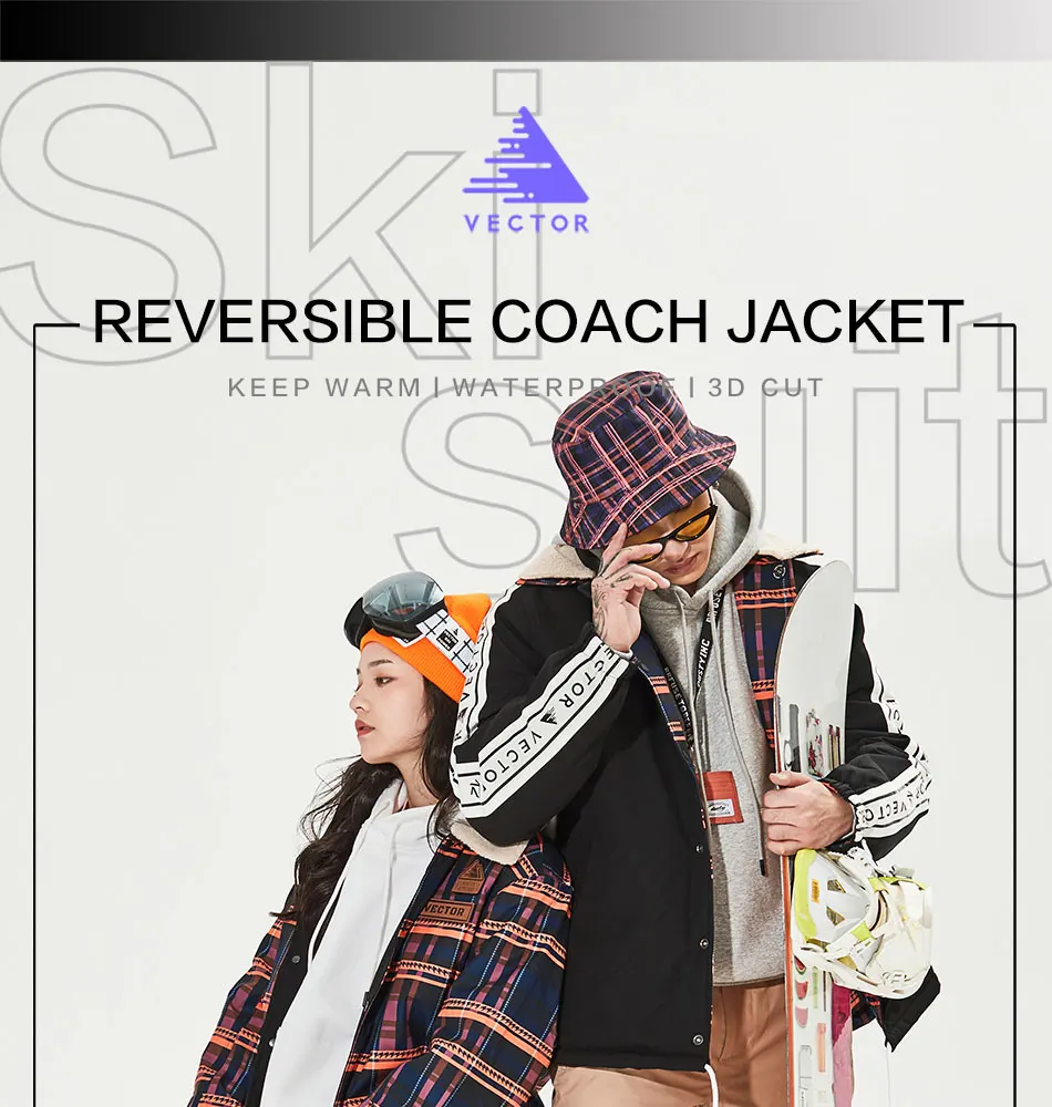 Двусторонняя Лыжная куртка VECTOR для мужчин и женщин, теплая зимняя ветрозащитная водонепроницаемая куртка для занятий спортом на открытом воздухе, сноуборда, лыжного спорта, модное пальто