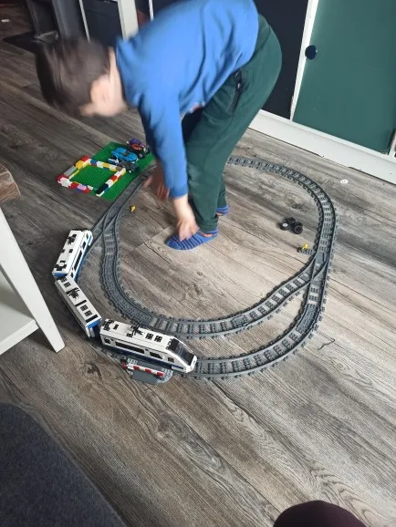 Это очень красивый комплект! Я действительно рекомендую его всем, кто просто хочет попробовать строительный блок железной дороги или нуждается в некоторых ценных частях поезда. Было бы также хорошо, как подарок на день рождения для детей, так как он легко строится и имеет все, что вам нужно для нескольких часов строительства и вождения веселья (за исключением батарей). Отлично!