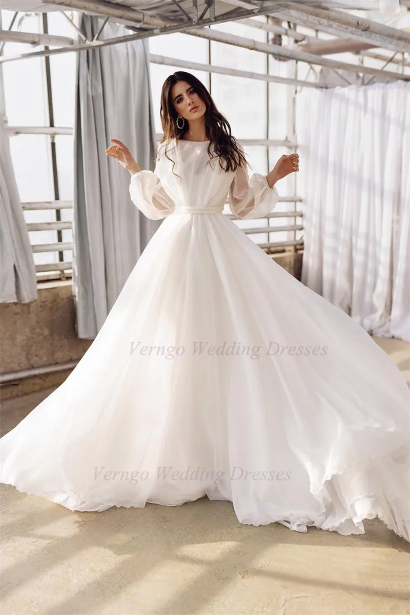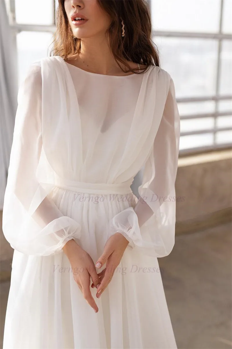 Простой шифоновый трапециевидный пляжный женский наряд Verngo с длинными рукавами и круглым вырезом, сексуальные свадебные платья с открытой спиной