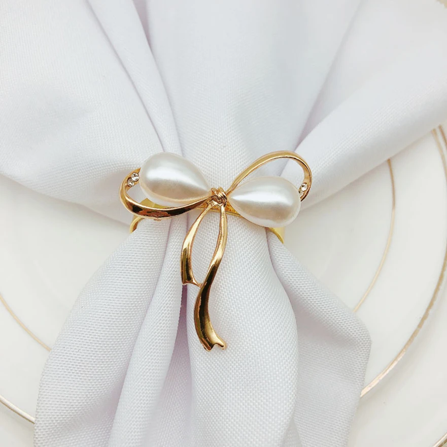 12 шт.лот модное свадебное кольцо для салфеток с жемчужным бантом, пряжка для салфеток, металлическое кольцо для салфеток, праздничное украшение для вечеринки и рабочего стола