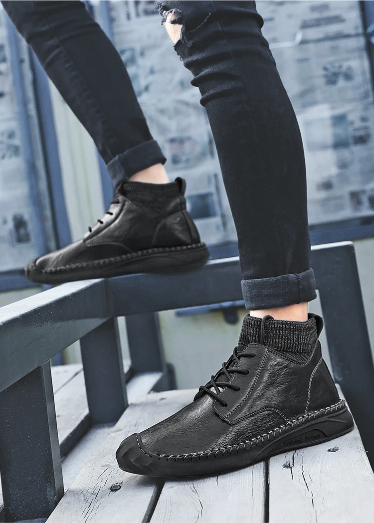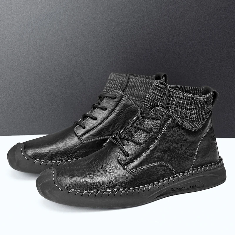 Кожаные мужские ботинки, модные теплые зимние ботинки, водонепроницаемая зимняя обувь, повседневные мужские ботильоны, рабочая обувь, Прямая поставка AODLEE