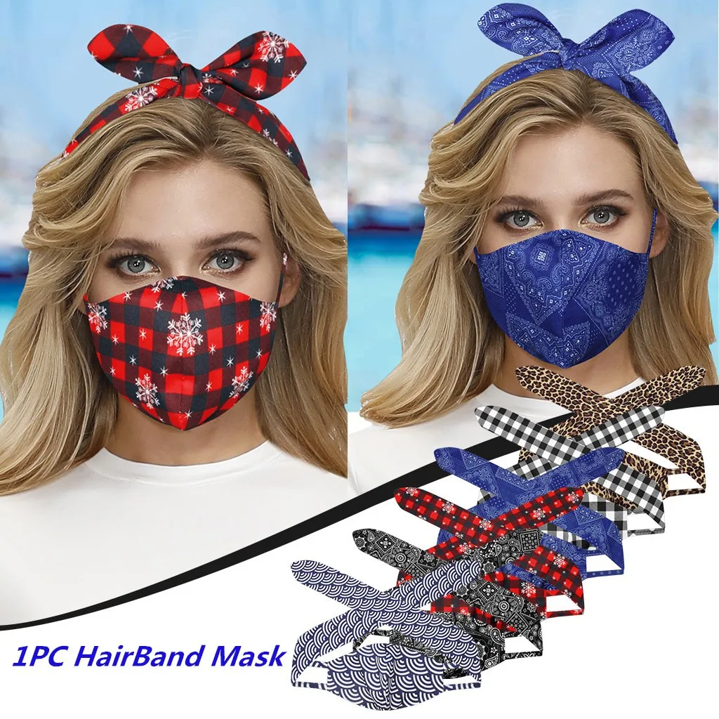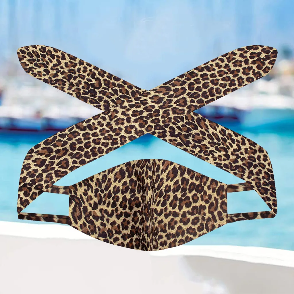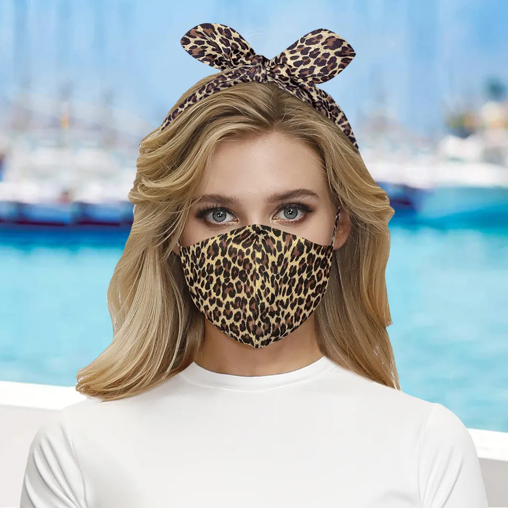 Милая маска для женщин и девушек с лентой для волос, повязка для лица, многоразовая маска для лица с леопардовым принтом, маски 2020, маска для лица