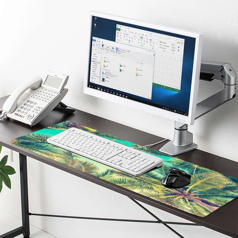 Большой коврик для мыши XXL, коврик для мыши с изображением банановых листьев тропических лесов, компьютерный коврик для клавиатуры, коврик для мыши с кактусами и зелеными листьями 900x400 мм