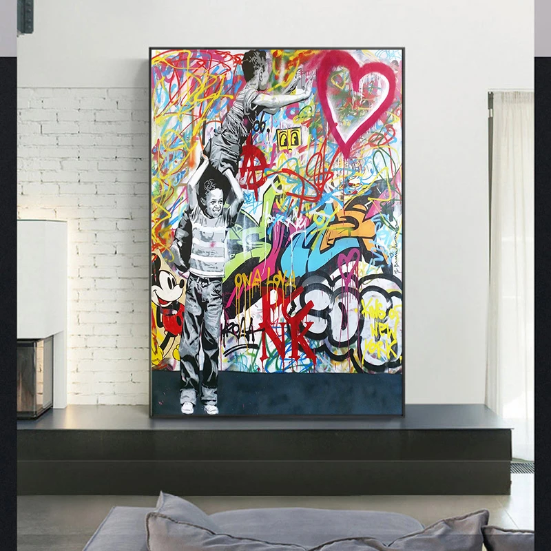 Современное художественное граффити, уличная поп-арт, холст, плакат...