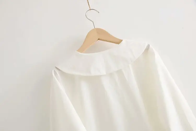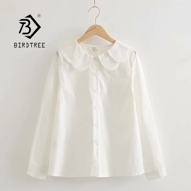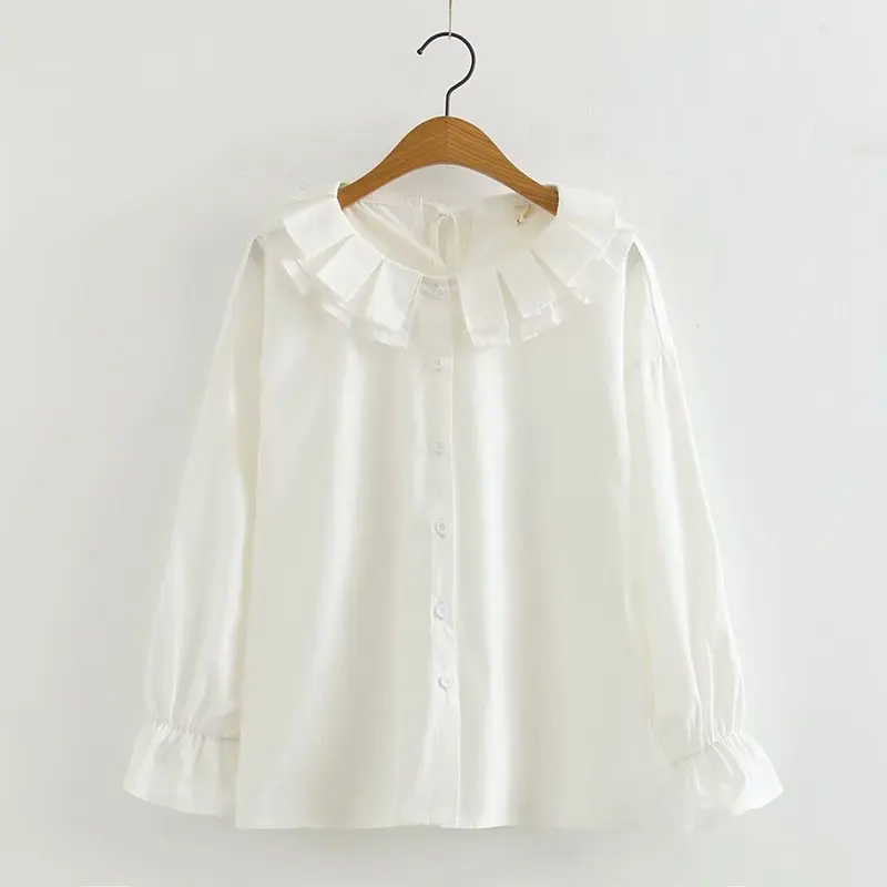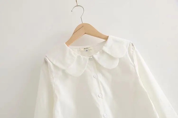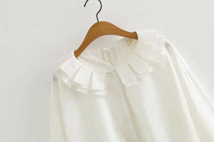 Осень 2020, Новое поступление, женская рубашка с цветочным воротником/воротником с рюшами, хлопковая белая рубашка с длинным рукавом, на пуговицах, свободная блузка, весенние повседневные приталенные Топы