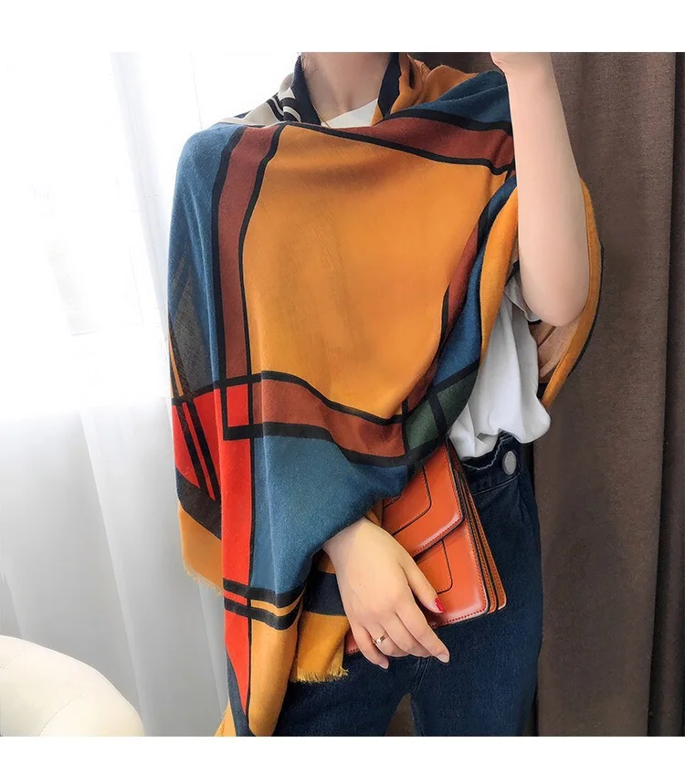 Шарф женский, хлопковый, с принтом, весенне-зимний, теплый, 2020