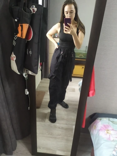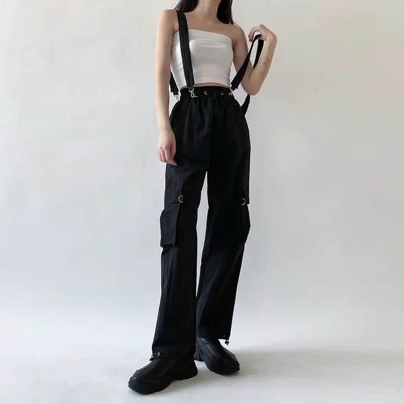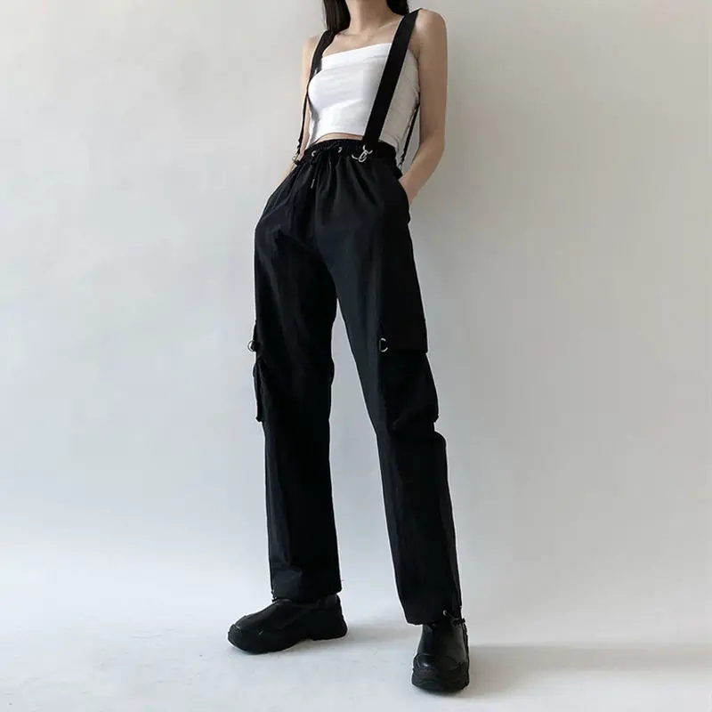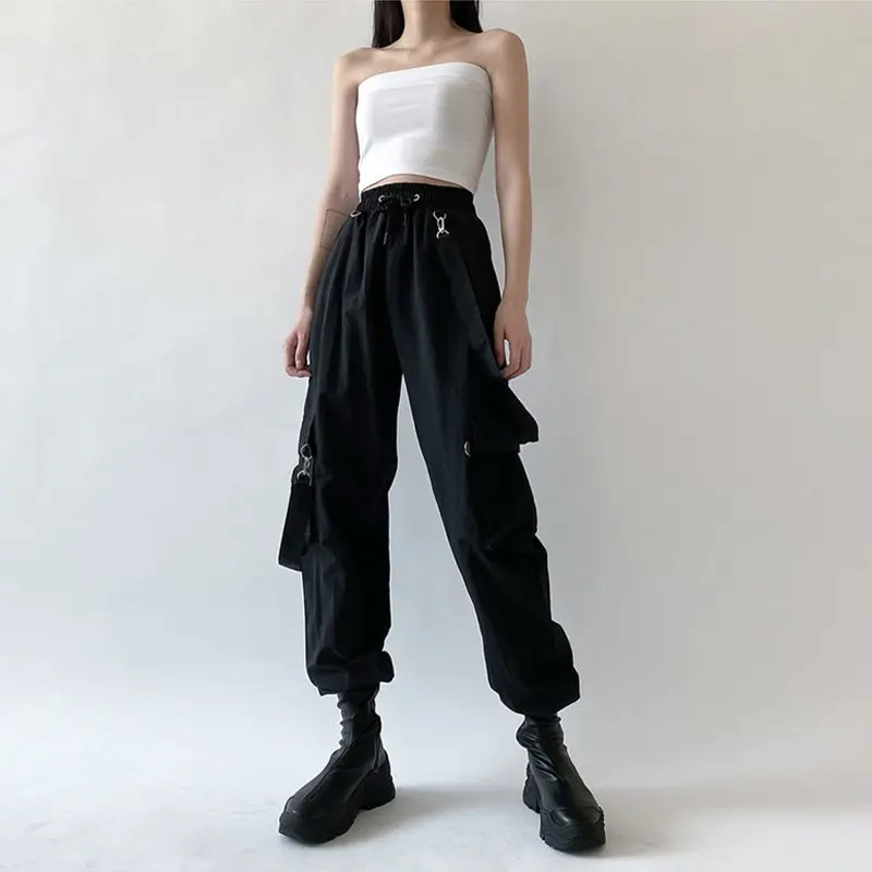 HOUZHOU Mall Goth черные брюки карго женские уличные готические свободные брюки с высокой талией корейские модные спортивные штаны комбинезоны 2021